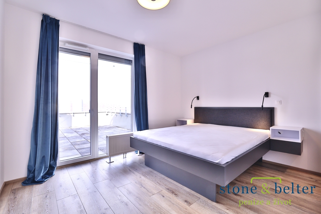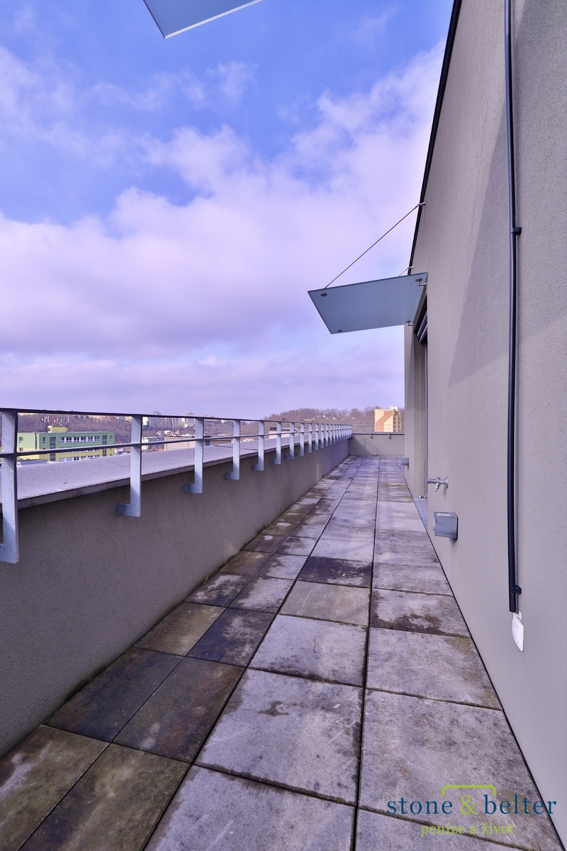 • ze všech pokojů je přístup na velkou terasu nabízející nevšední pohled na Prahu