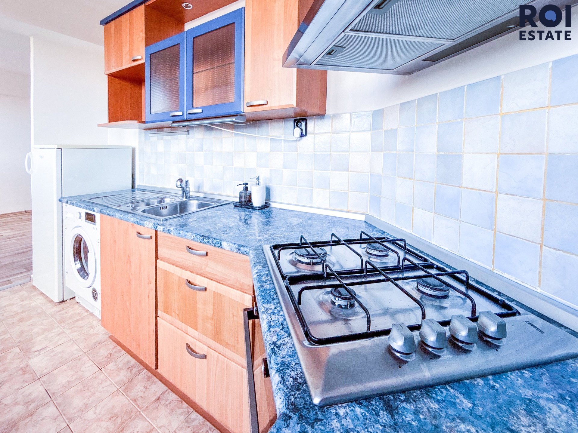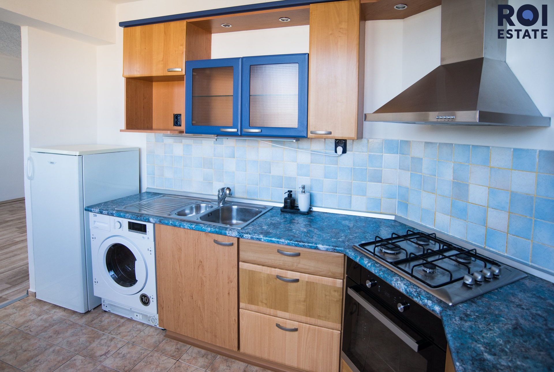 Byt je částečně vybaven: kuchyňská linka se sporákem, troubou a digestoří, lednice, pračka, šatní skříň, koupelna s vanou a samostatná toaleta.