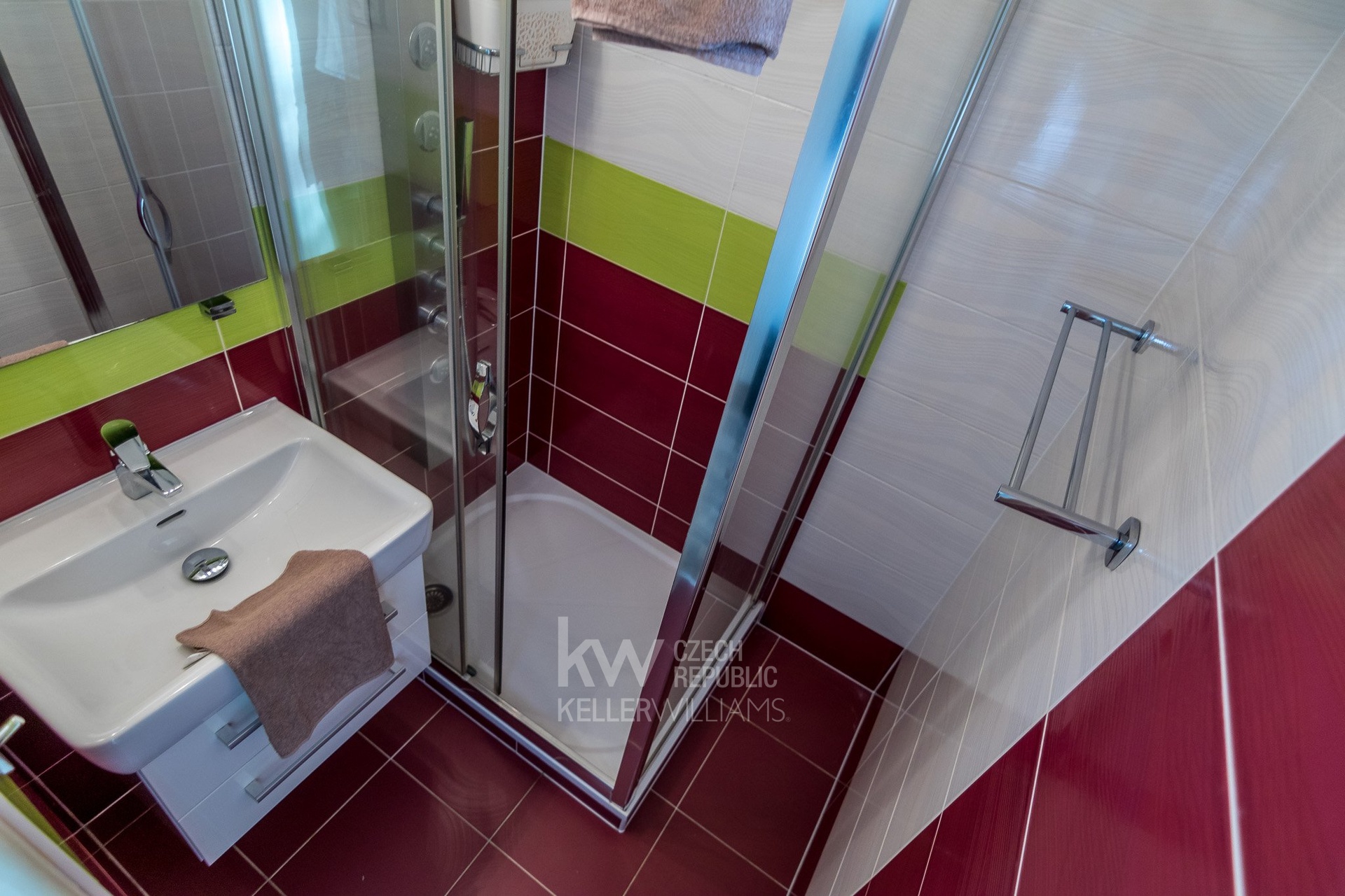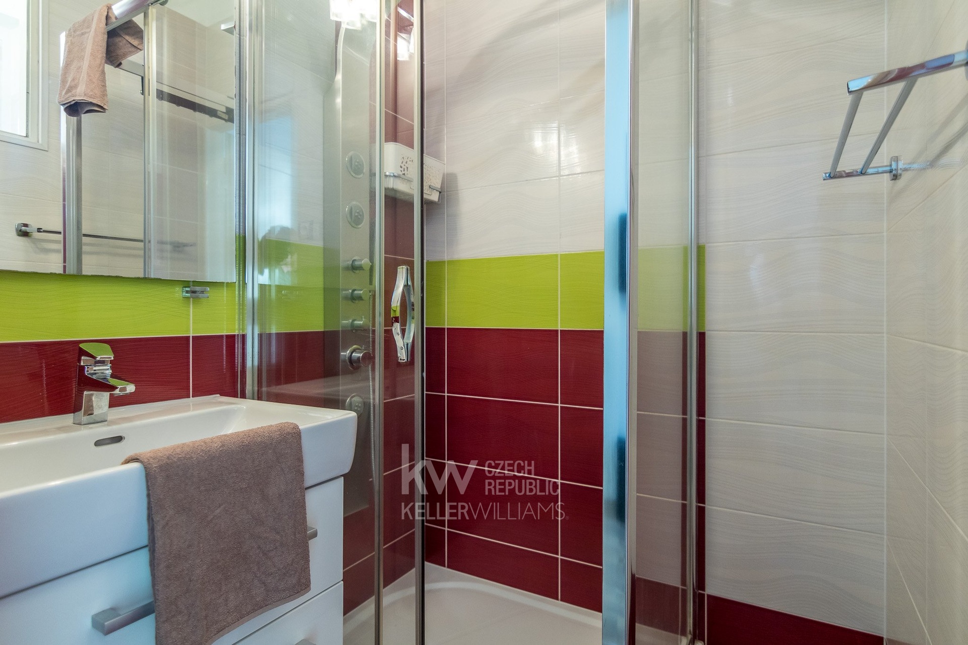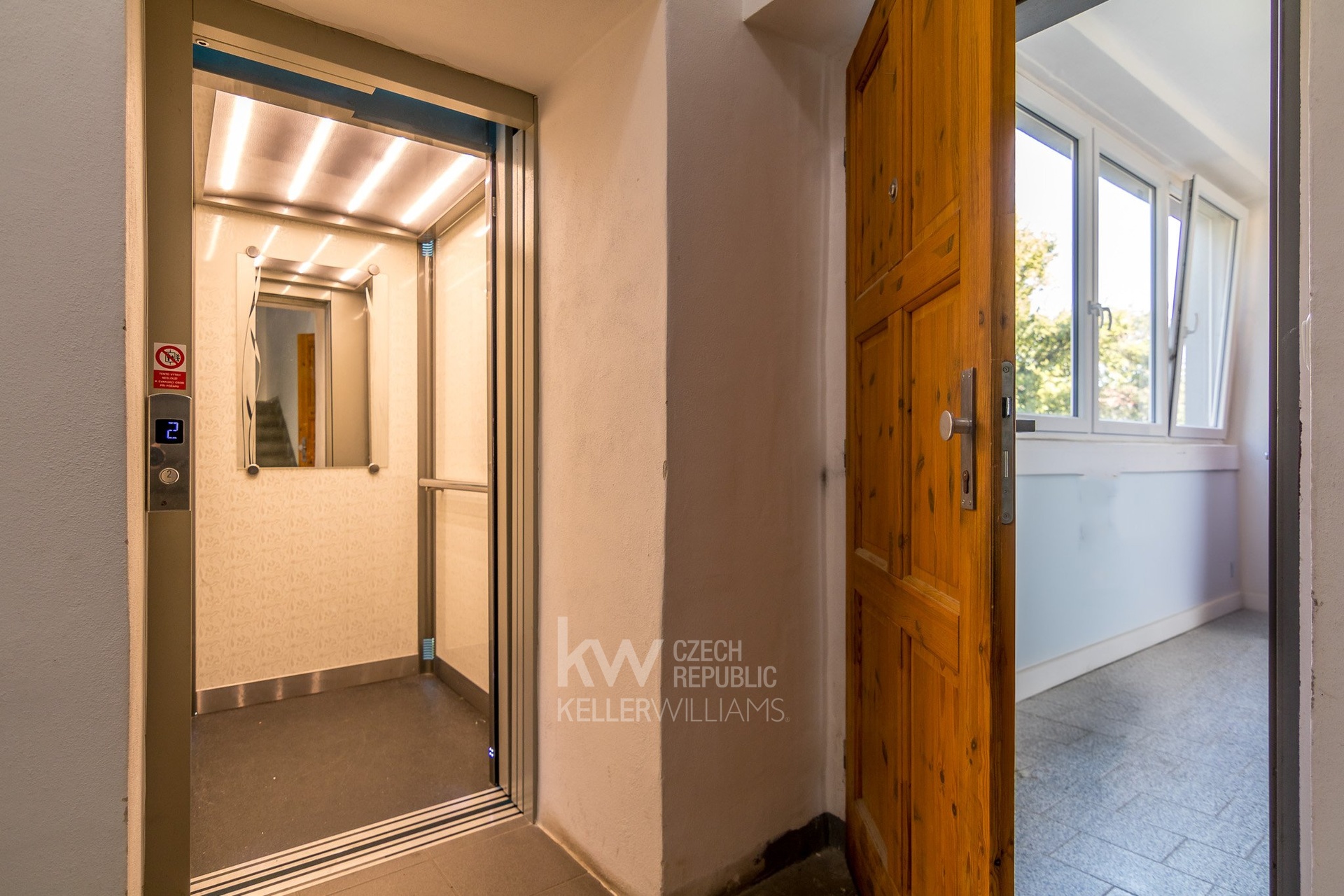 Bytová jednotka je umístěna v cihlovém domě s výtahem, který prošel zateplením. Interiér bytu je chytře řešený a připravený k okamžitému užívání. Srdcem bytu je obývací pokoj s plně vybaveným kuchyňským koutem (myčka, lednice, trouba, sklokeramická varná deska, digestoř, mikrovlnná trouba). Prostor je efektivně využit díky praktické sklápěcí posteli, která přes den šetří místo. Dispozici doplňuje druhý pokoj, koupelna se sprchovým koutem, samostatné toaleta a prostorná komora. K bytu náleží sklep v suterénu a k dispozici je také lodžie na patře, sdílená pouze s jednou sousední jednotkou.