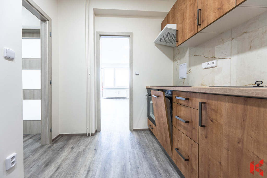 Byt je proveden v dobrém standardu, světlý, dispozičně řešený jako 2 neprůchozí pokoje s balkónem, kuchyň, oddělená koupelna a WC. Pokoje jsou orientovány do klidného vnitrobloku. Je pronajímán částečně zařízený.