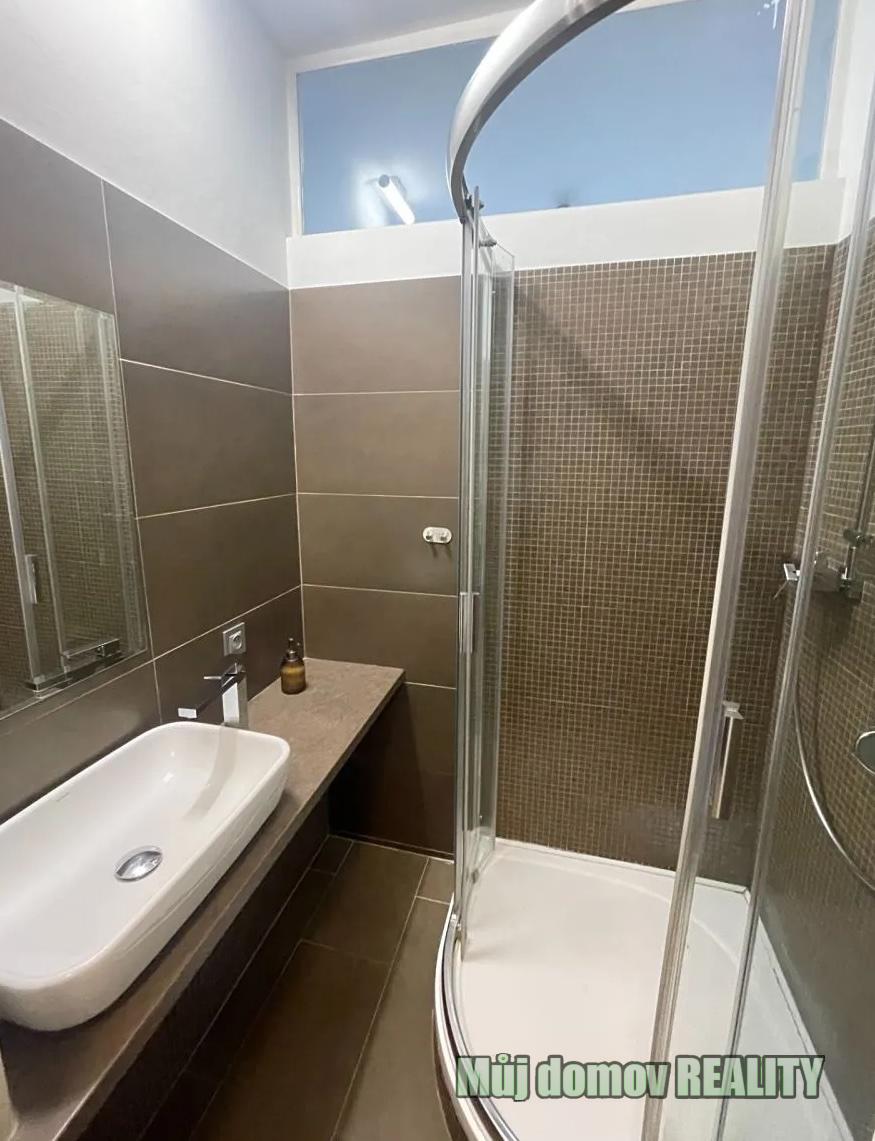 Byt má praktické dispoziční řešení. Rohová kuchyň se spotřebiči (lednice, sporák, trouba, digestoř, myčka a pračka) je umístěna v samostatném prostoru s oknem. Koupelna je vybavena sprchovým koutem a v chodbě se nachází vestavěné skříně, které poskytují dostatek úložného prostoru.