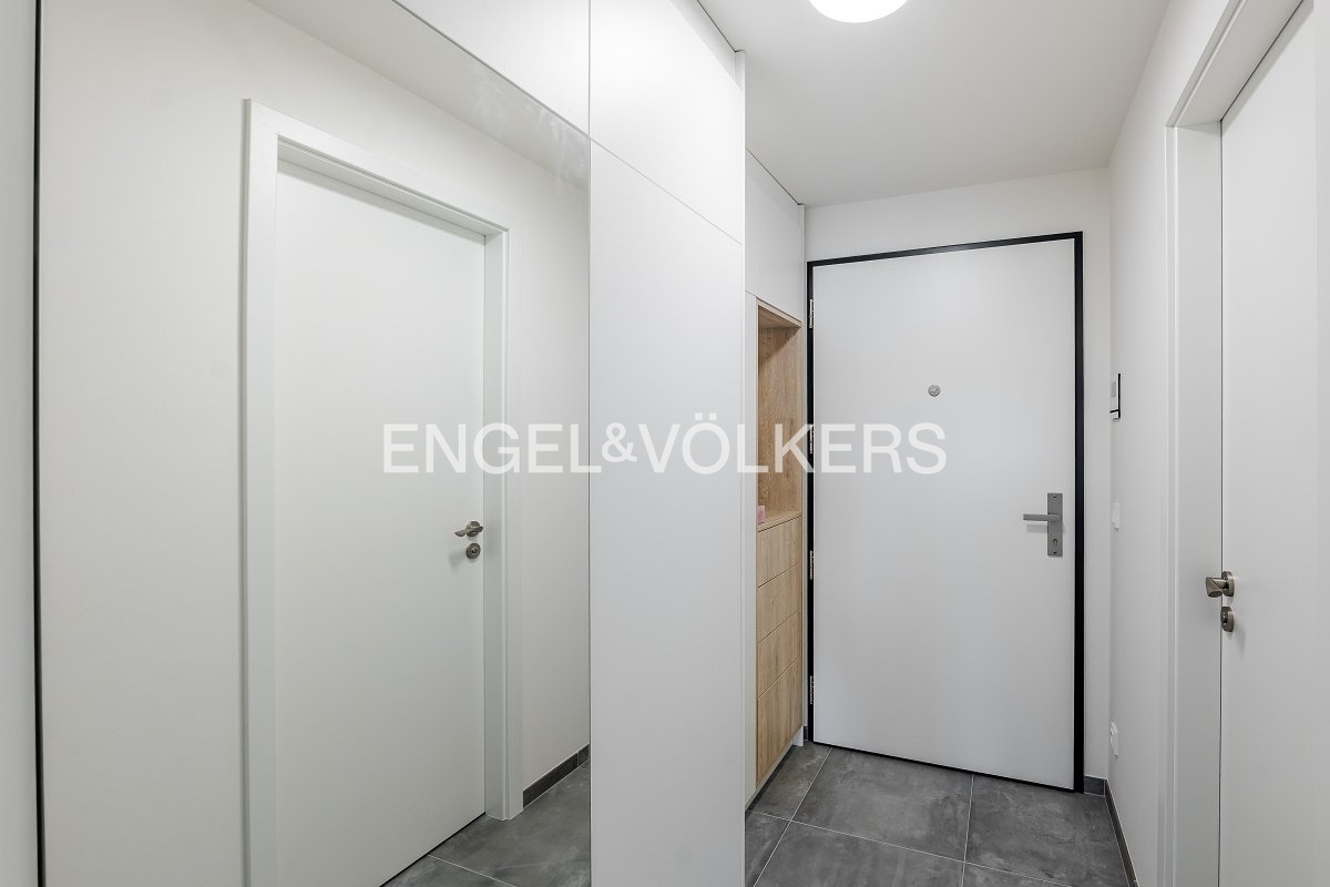Kuchyňská linka je vybavena všemi spotřebiči – varnou dvojplotýnkou, prostornou lednicí, myčkou a množstvím úložných skříněk. V chodbě se nachází vestavěná skříň se zrcadlem, botníkem, policemi a šuplíky na push systém. Samozřejmostí je vybavení zvonkem s kamerou a rekuperace, které zajišťují bezpečnost a komfortní vnitřní klima.