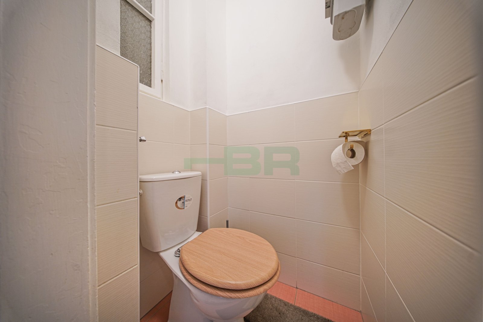 Orientace oken na západ. Velmi prostorná koupelna s vanou, pračkou a oknem do světlíku. WC samostatné také s oknem do světlíku. Na podlahách parkety a dlažba.