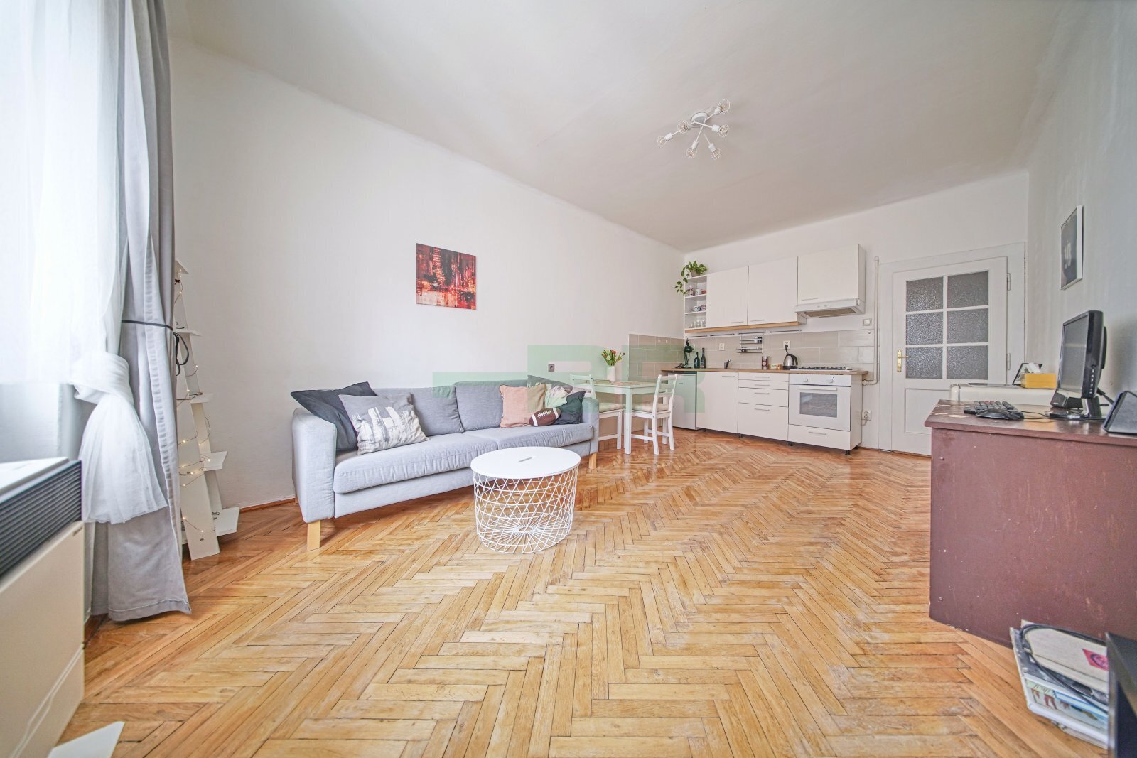 Kompletně zařízený spotřebiči i nábytkem, viz fotografie. V případě zájmu o nezařízený stav, je možné nábytek odstěhovat.