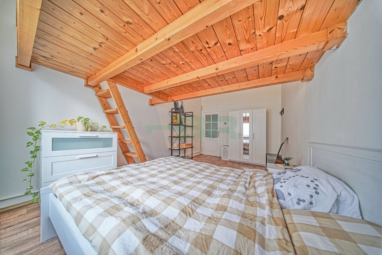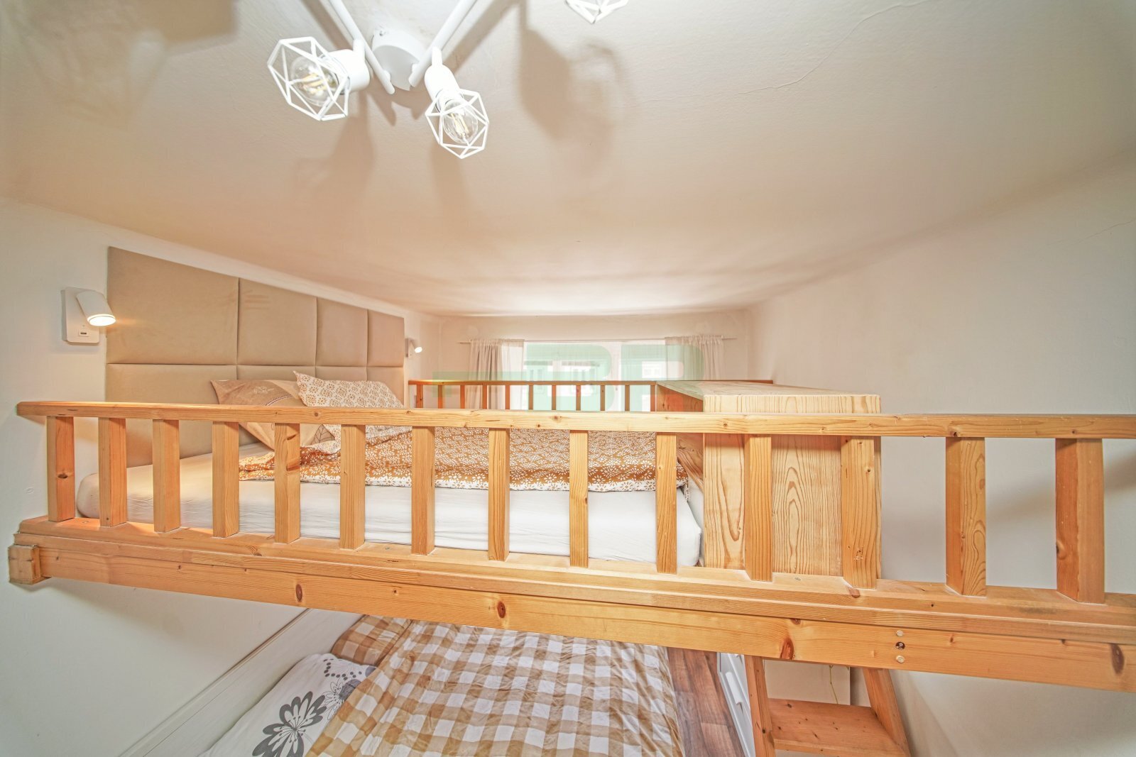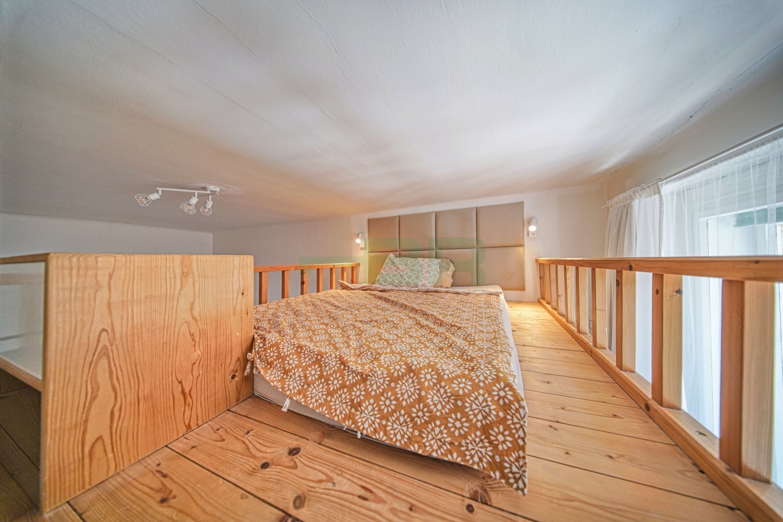 Byt 2+kk (49,5 m2), patro na spaní (6 m2), drátěný sklep (3 m2). Balkón v mezipatre k užívání.