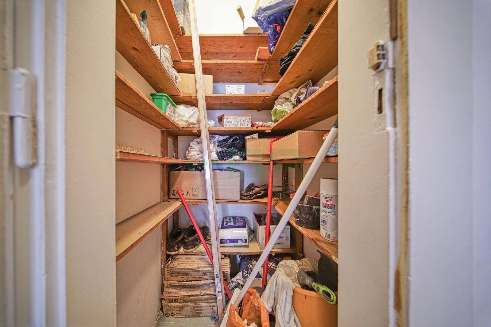 V předsíni dvě vestavěné skříně a komora.