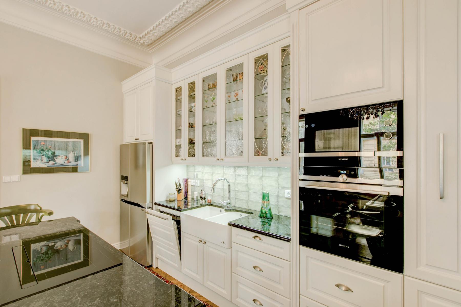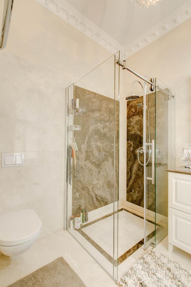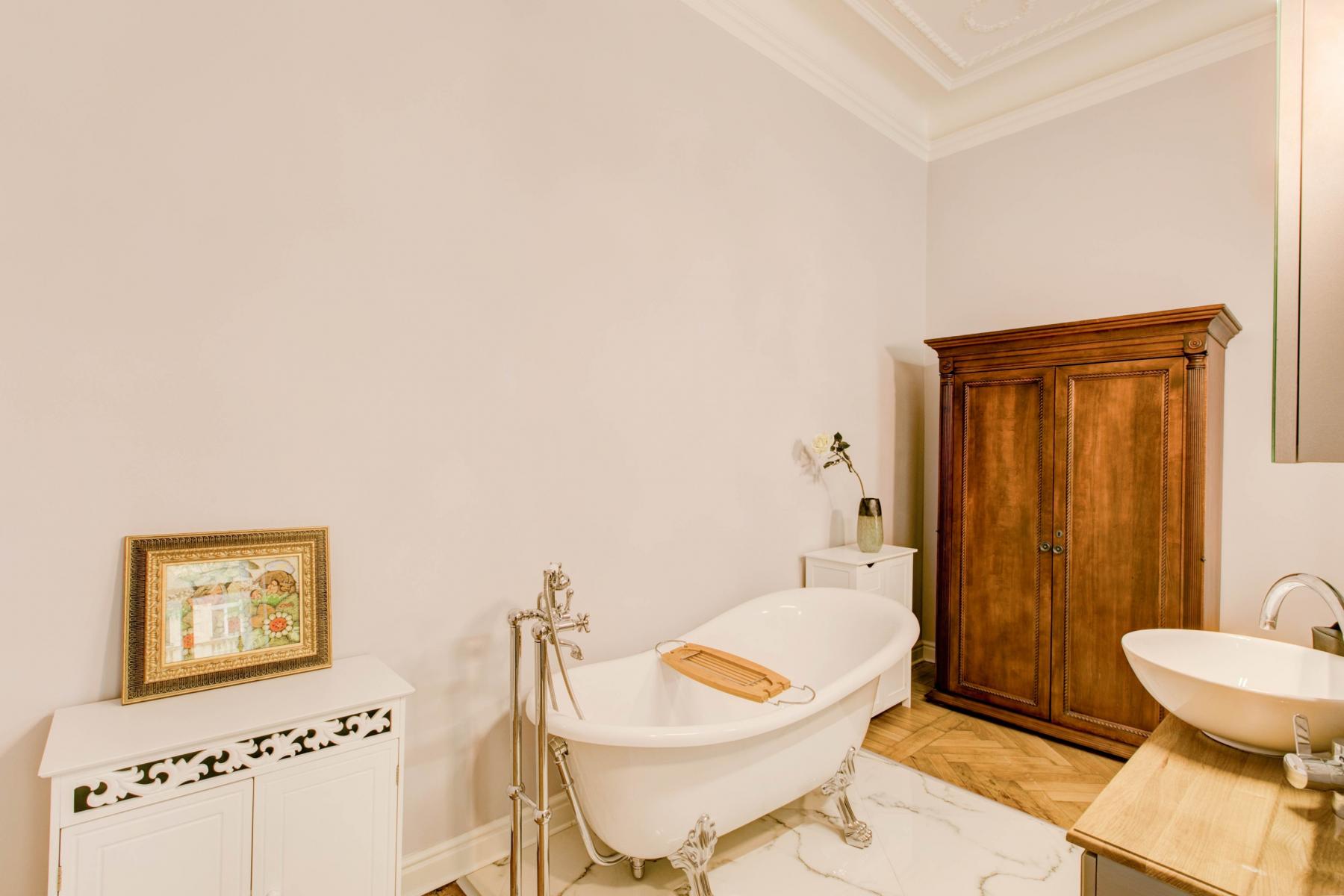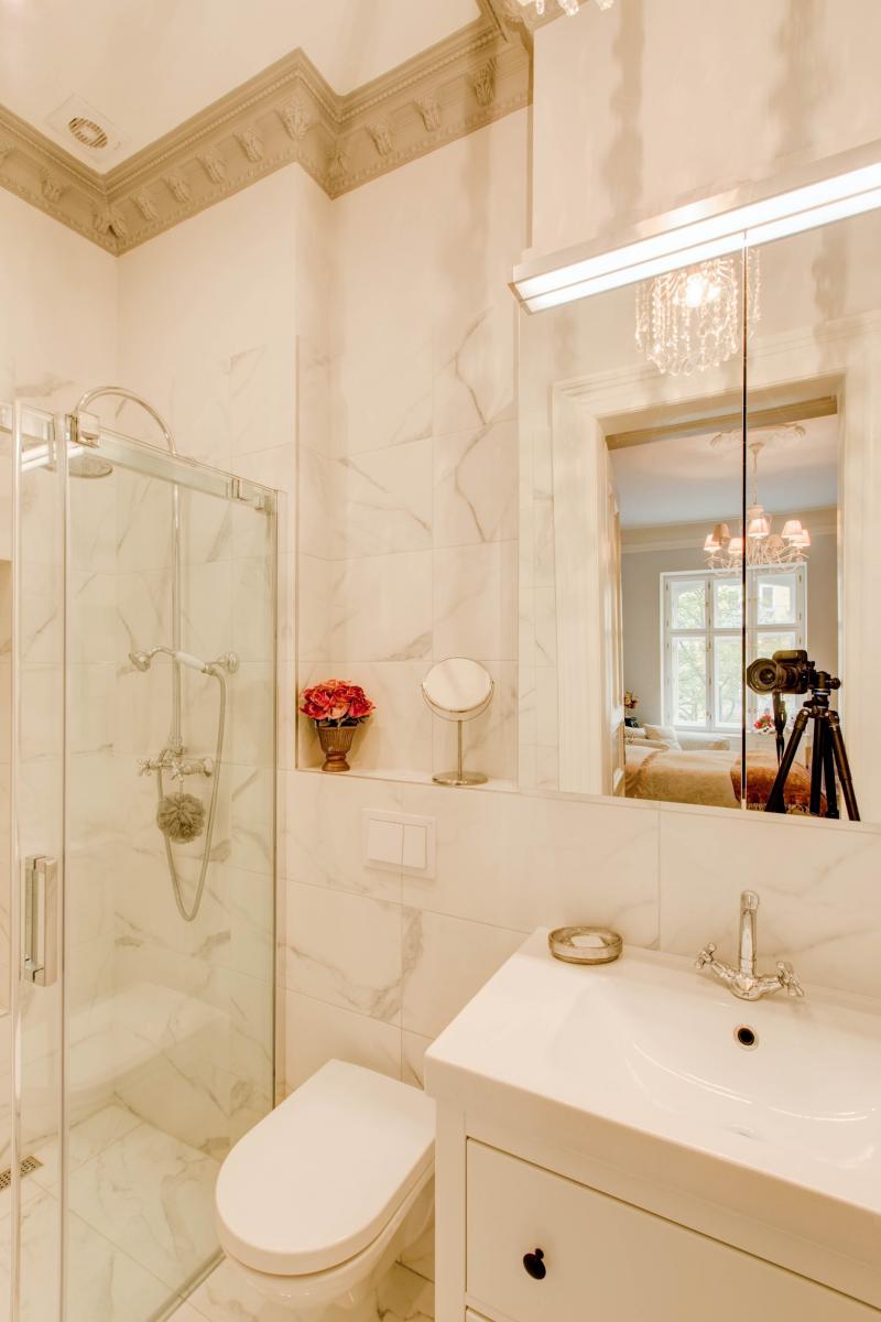 Nabízíme Vám k pronájmu tento výjimečný byt s třemi ložnice a třemi koupelnami na pražských Vinohradech. Byt je velkoryse vybaven a disponuje též prostorným balkónem, kde je možné grilovat či jen tak posedět. Balkón je orientovaný do klidného vnitrobloku. Byt se nachází ve zvýšeném prvním patře. Srdcem celého bytu je 35 m2 velký obývací pokoj spojený s kuchyní ve vysokém standardu. Odtud vedou dveře na obě strany, kde se nachází ložnice. Každá se svojí koupelnou. V jedné místnosti je koupelna součástí pokoje, je však oddělena stěnou uprostřed místnosti. V druhé ložnici je koupelna standardně mimo místnost. Do poslední třetí ložnice se dostaneme přes prostornou chodbu spojující vchod do bytu, obývací pokoj, extra toaletu a prostornou šatnu. I poslední ložnice má svoji koupelnu. Ze třetí ložnice je přístup na balkon. K bytu je k dispozici i prostorná sklepní kóje v přízemí. Zastávka metra kousek od bytu, tramvajová zastávka Šumavská je vzdálena asi 1 minutu chůze. Velké množství kvalitních obchodů, restaurací, kaváren a bister v docházkové vzdálenosti. Byt i dům jsou nádherně zrekonstruovány.