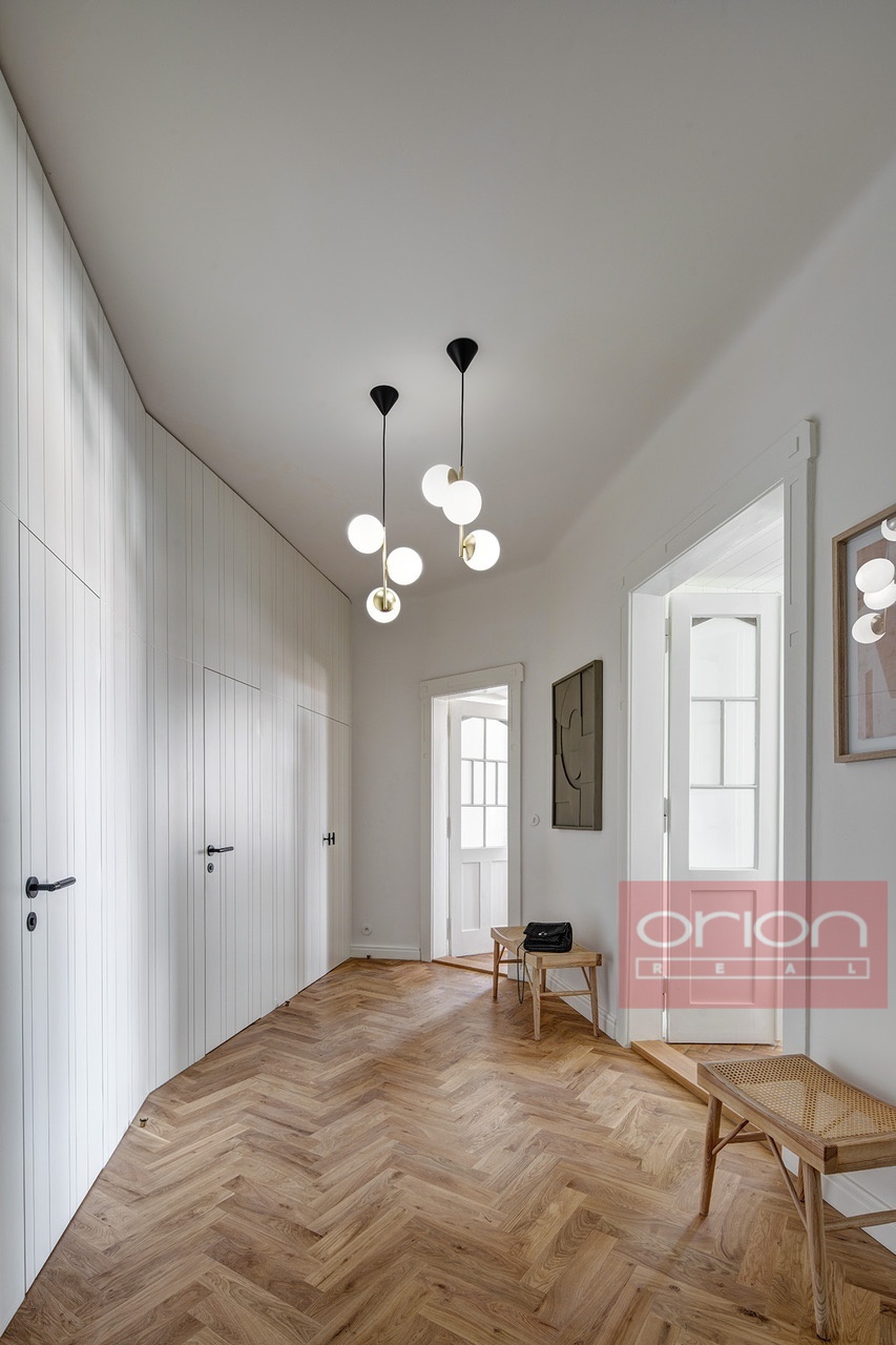 Nabízíme k pronájmu luxusní, plně zařízený byt 3+kk o velikosti 86 m² v bytovém domě s výtahem, nacházející se ve vyhledávané lokalitě Praha 6 - Dejvice, v krátké pěší vzdálenosti od stanice metra a tramvaje Hradčanská. Byt disponuje plně vybavenou kuchyní s jídelním koutem, prostorným obývacím pokojem, dvěma ložnicemi, šatnou, dvěma koupelnami se sprchovým koutem a toaletou a navíc samostatnou toaletou. K vybavení patří pračka, sušička, Wi-Fi a zabezpečovací systém. Na podlahách jsou kvalitní parkety. Z oken je krásný výhled na Dejvické střechy, oblíbený park Stromovka je vzdálen pouhých 10 minut pěšky. Lokalita nabízí kompletní občanskou vybavenost, množství restaurací, bister a lokálních obchodů. Výborná dopravní dostupnost jak MHD (metro i tramvaj 1 minutu chůze od domu), tak autem do centra města, na letiště i do mezinárodních škol.