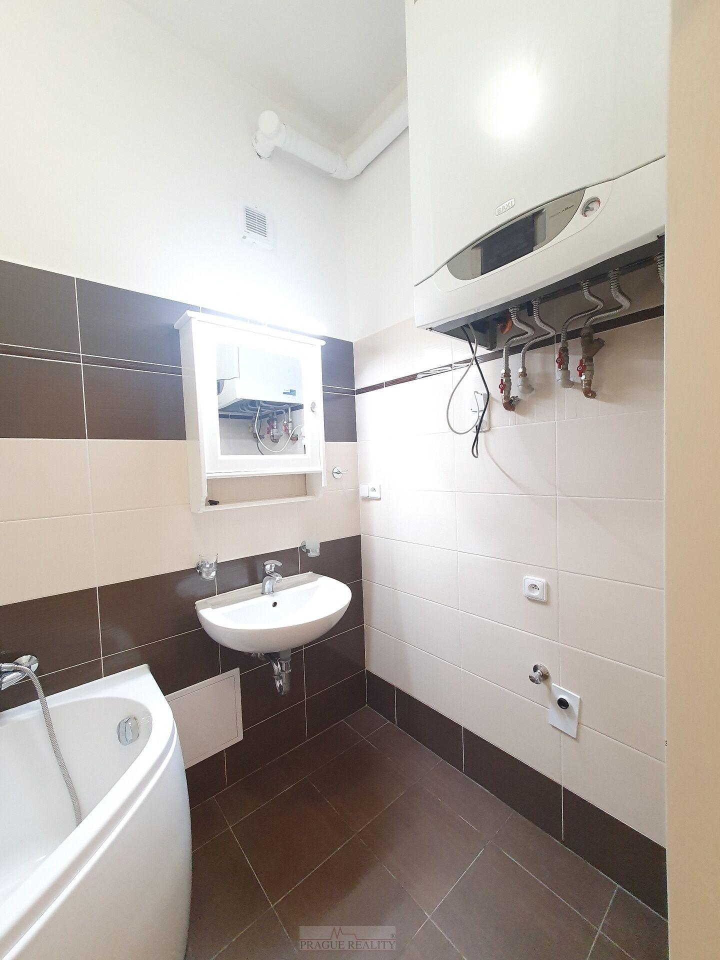 Byt je ve velmi dobrém, udržovaném stavu, nyní kompletně nově vymalován. Je pronajímán nezařízený (je zde pouze kuchyňská linka a sporák). Na topení a ohřev vody vlastní plynový kotel. Má vstupní předsíň, směrem do ulice obývací pokoj s kuchyňským koutem, směrem do klidného dvora velkou ložnici a uprostřed koupelnu s vanou a oddělené WC.