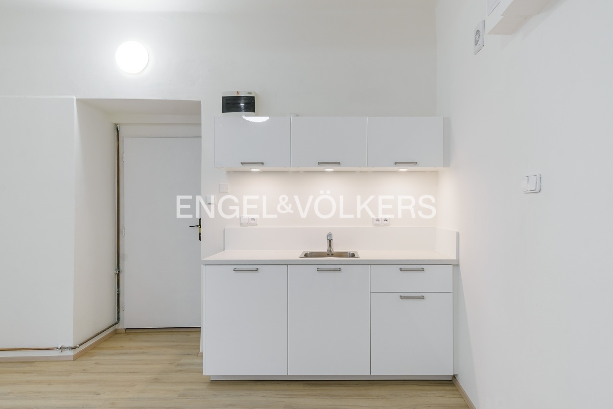 K okamžitému pronájmu nabízíme světlý byt s dispozicí 1+kk po kompletní rekonstrukci. Byt je tvořen prostornou místností s novým kuchyňským koutem, který je vybaven lednicí, dvouplotýnkou a externí troubou. Poskytuje dostatek místa pro skříně, postel i obývací část. Pokoj je orientován do klidného vnitrobloku. Koupelna je vybavena sprchovým koutem, umyvadlem a toaletou, je zde i pračka. Topení je lokální plynové, ohřev vody je zajištěn elektrickým bojlerem.
