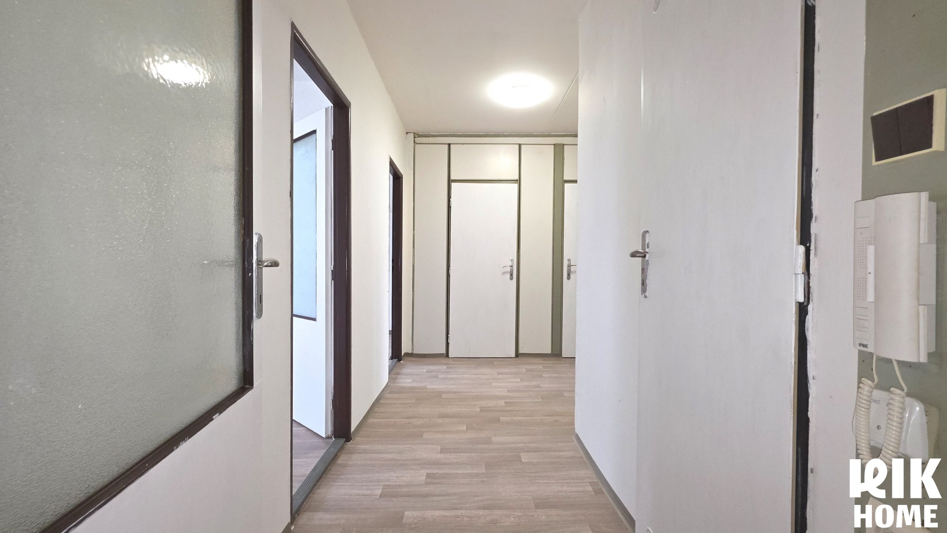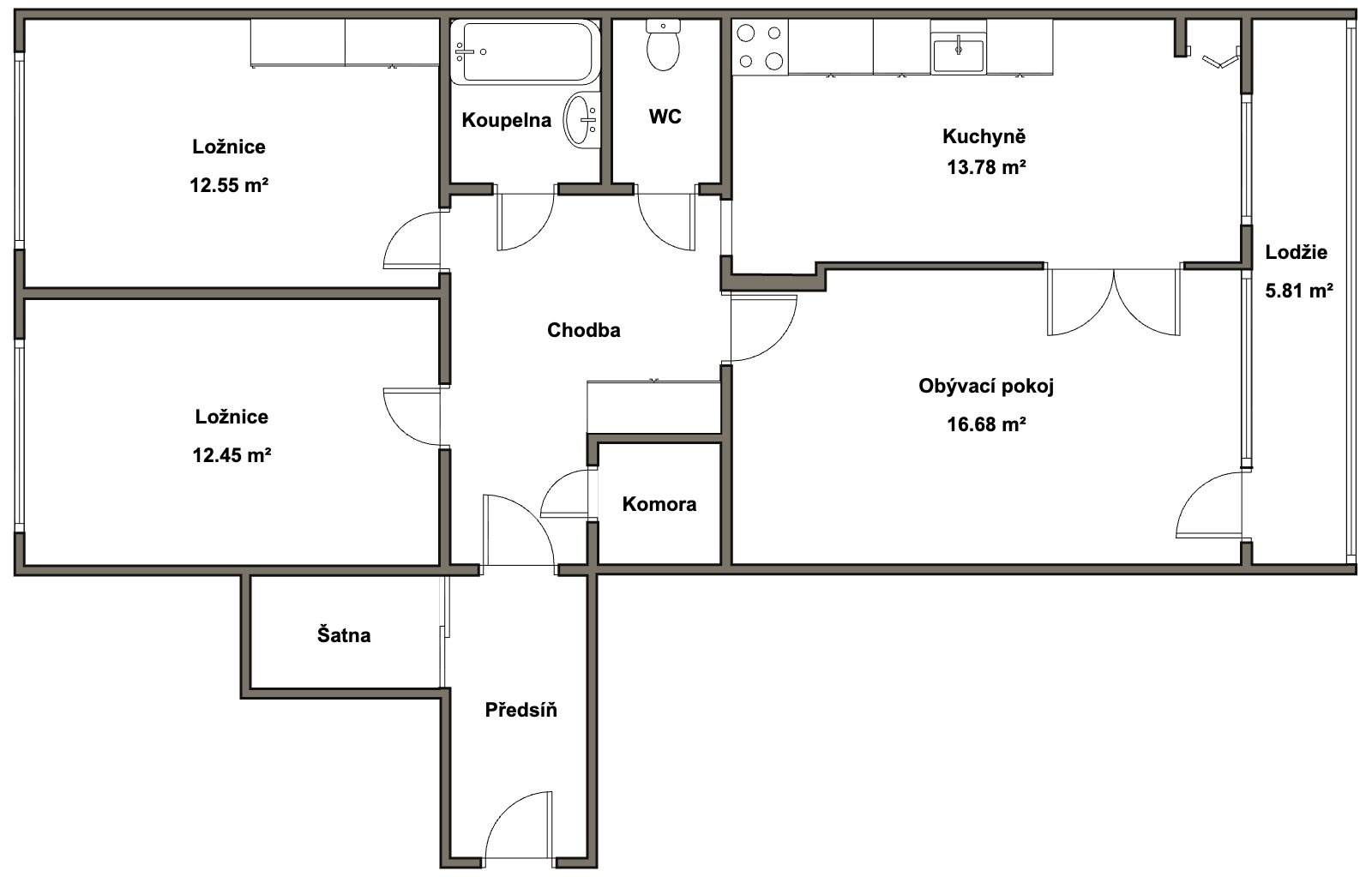 Byt vyniká svou velikostí a vysoce praktickým uspořádáním. Dominantou je centrální chodba, která zajišťuje naprostou neprůchodnost všech obytných místností. Dispozice nabízí dvě samostatné ložnice, světlý obývací pokoj se vstupem na lodžii s výhledem do zeleně a samostatnou kuchyni s dostatečným prostorem pro plnohodnotný jídelní kout. K maximalizaci úložných kapacit slouží samostatná šatna navazující na předsíň a vnitřní komora. Jádro tvoří koupelna s vanou a oddělená toaleta. Vytápění je řešeno centrálně dálkově. Byt je udržovaný, plně funkční a připravený k užívání, přičemž jeho aktuální stav poskytuje novému majiteli ideální čisté plátno pro případnou realizaci vlastních představ o moderním bydlení.