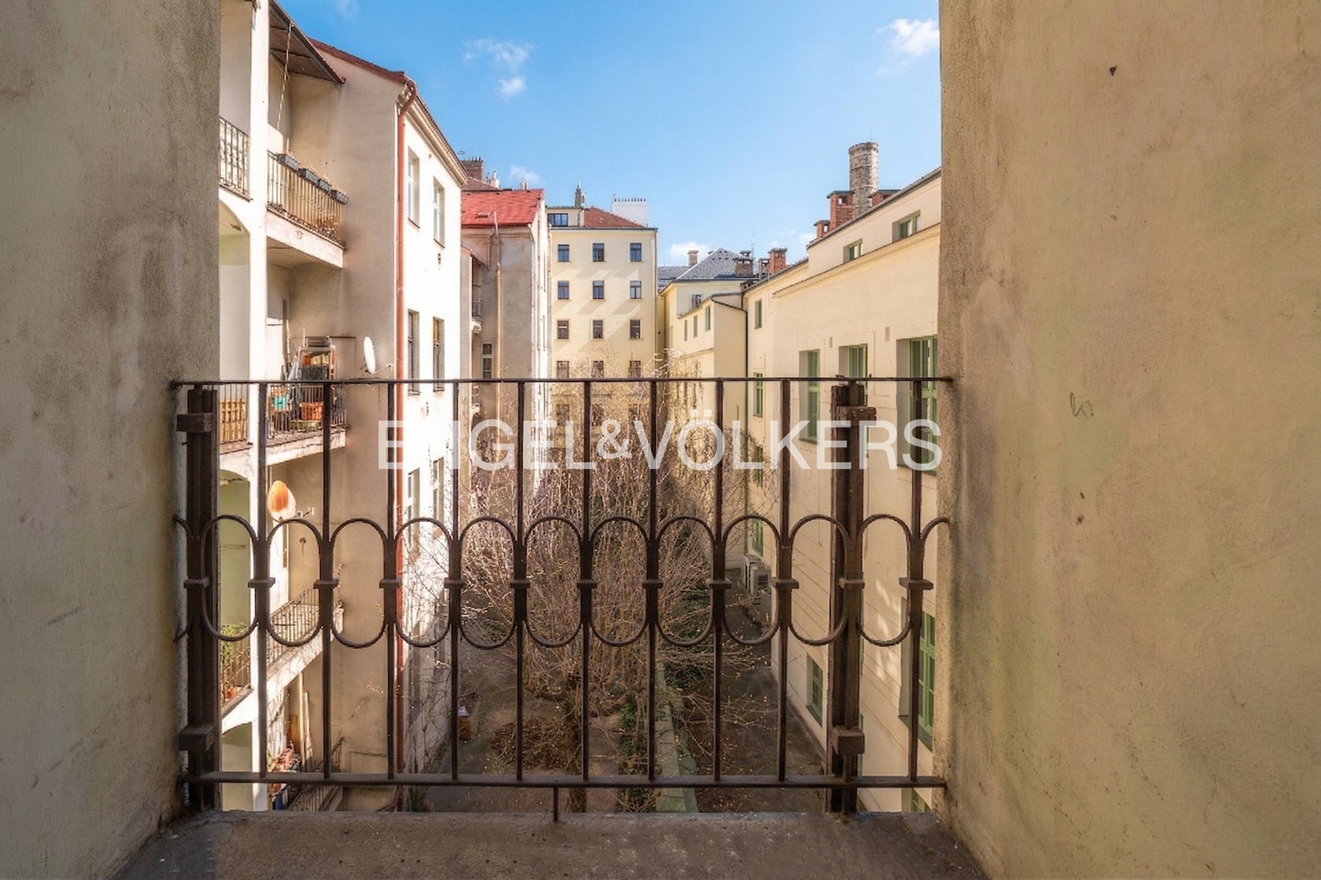 Velkorysý byt o dispozici 3+1 ve 4. NP klasického činžovního domu z roku 1893 nabízí 112 m² prakticky řešeného prostoru. Tři pokoje jsou orientované na západ do ulice, zatímco kuchyně s východní orientací směřuje do klidného vnitrobloku a navíc disponuje praktickou komorou. V bytě se nacházejí dvě toalety a jedna koupelna. K bytu náleží malý balkon do vnitrobloku.
