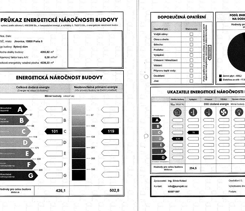 Ukazatel energetické náročnosti budovy:101 kWh/m²