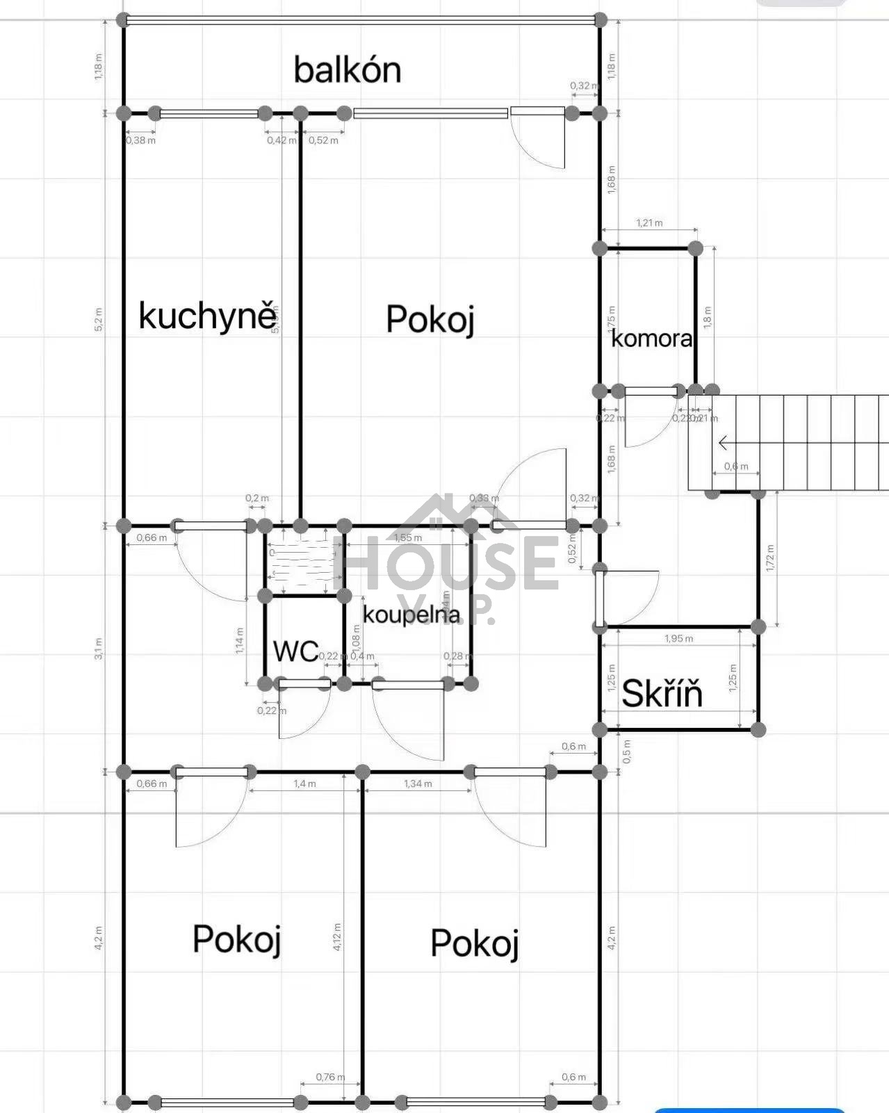 Byt prošel rekonstrukcí v roce 2020 a nabízí komfortní zázemí pro větší rodinu, případně možnost rozdělení na dvě samostatné obytné zóny (ideální pro dvougenerační bydlení nebo kombinaci bydlení a home office).