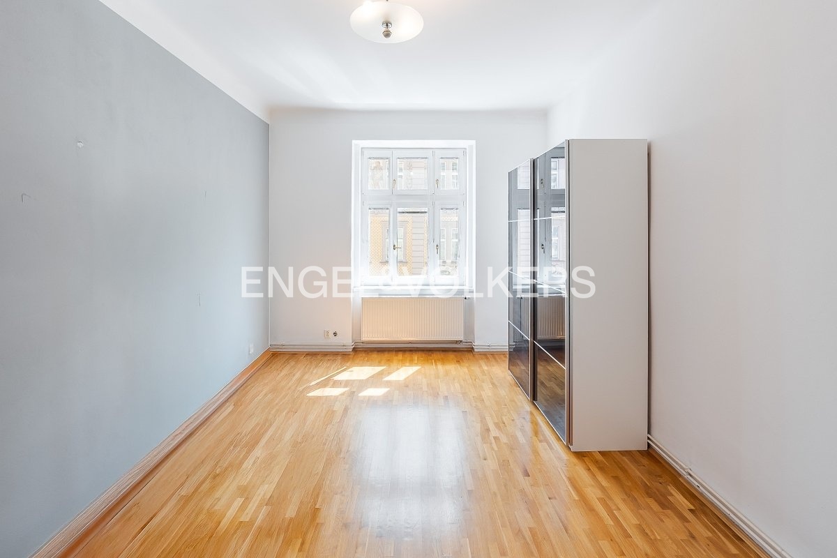 Po vstupu do bytu vás přivítá prostorná předsíň, ze které vedou vstupy do všech místností. Obývací pokoj a jedna z ložnic jsou orientovány na jih do ulice, díky tomu jsou místnosti prosluněné a plné světla. Další ložnice a kuchyň mají okna směřující do klidného vnitrobloku, což zaručuje ticho a soukromí.