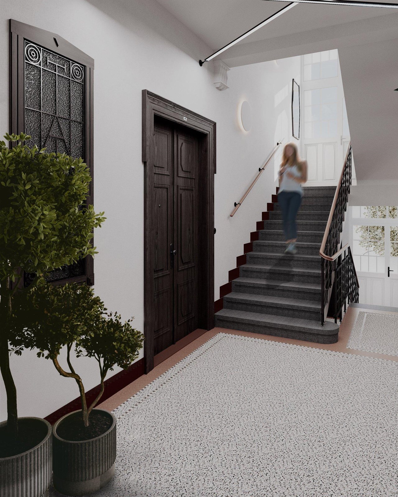 Dům po kompletní rekonstrukci má reprezentativní společné prostory, moderní výtah, repasované kamenné schodiště se zdobným zábradlím a nové technické zázemí. Rezidentům je k dispozici sauna a ve vnitrobloku pak klidné místo k posezení mezi zelení. Dům stojí v tiché části ulice Heřmanova na Letné – v místě, kde se setkává městský život s klidem. Jen pár kroků odtud se otevírá Stromovka i Letenské sady, zatímco v okolí najdete oblíbené kavárny, bistra a designové obchody. V docházkové vzdálenosti je Národní galerie, obchodní centrum Stromovka i veškeré služby pro každodenní život. Na Strossmayerovo náměstí dojdete za pět minut, metro Vltavská je v dosahu osmi minut chůze a do centra Prahy se dostanete MHD během dvanácti. Letná nabízí rovnováhu – městskou energii i prostor pro zklidnění tempa. Heřmanova 24 stojí přesně uprostřed.
