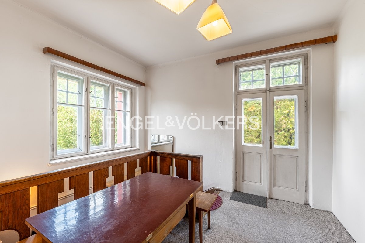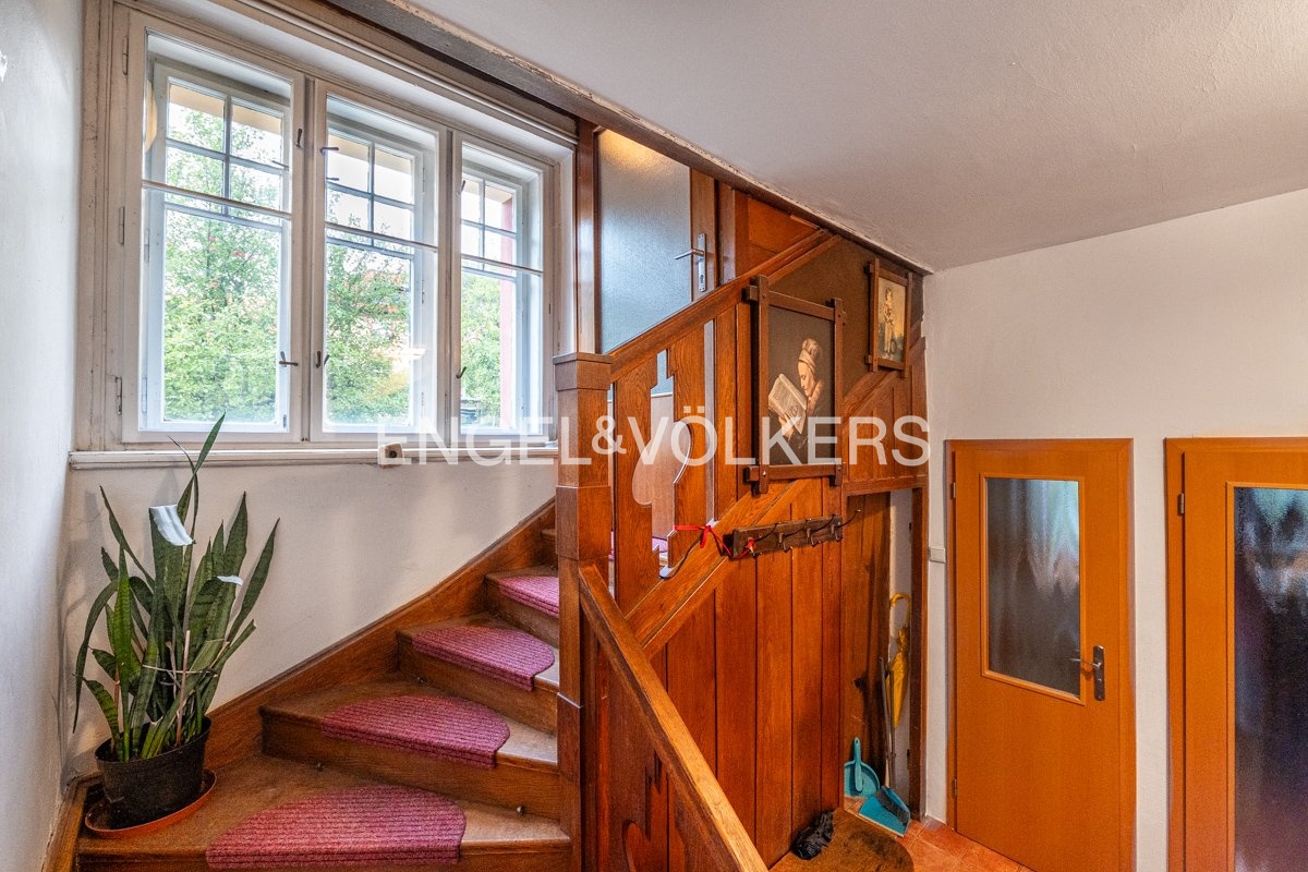 Polovina dvojdomu situovaná v klidné vilové čtvrti s výbornou dopravní dostupností nabízí unikátní příležitost k rodinnému či vícegeneračnímu bydlení v jedné z nejžádanějších pražských lokalit.