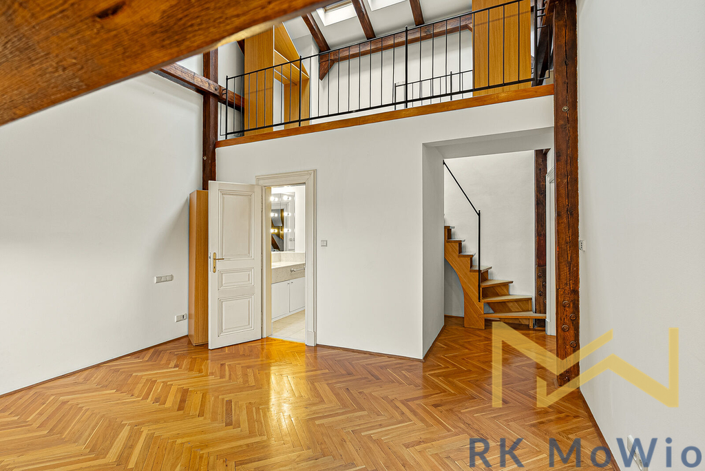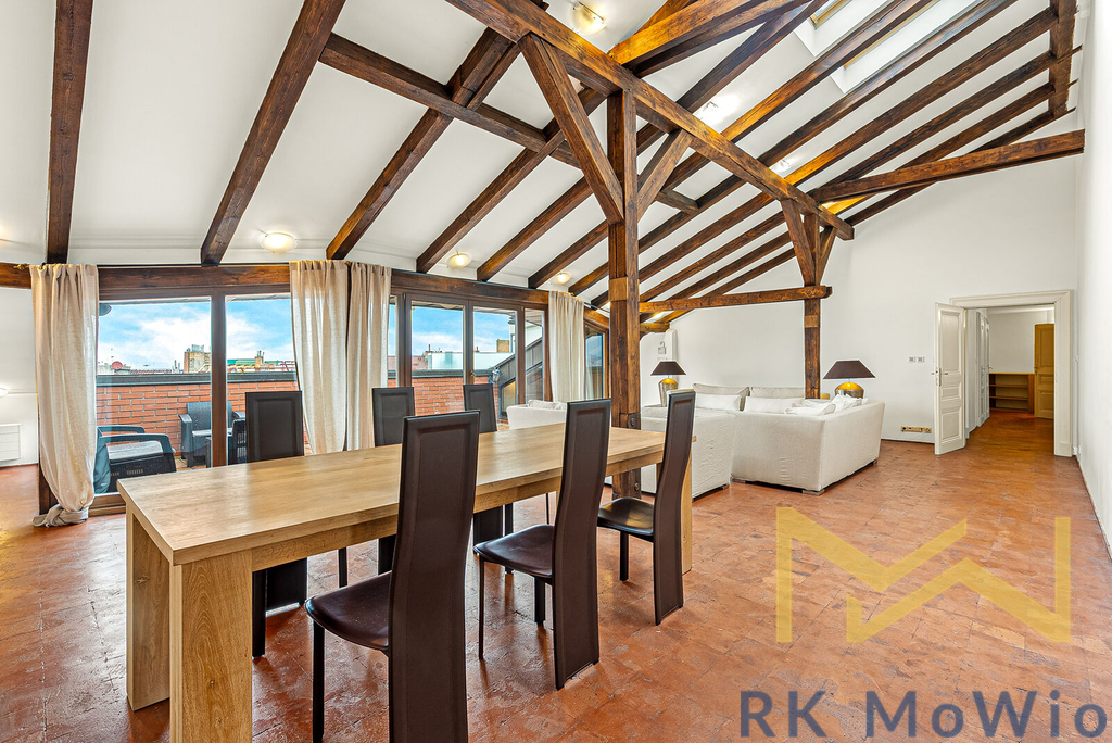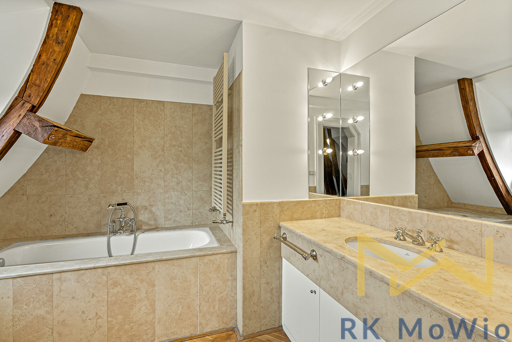 K pronájmu nabízíme podkrovní mezonetový byt bez nábytku, 4+1 s podlahovou plochou 282,23 m² a terasou (o výměře 23,29 m²) s výhledem na Pražský hrad, situovaný v 5. patře (6. nadzemní podlaží) honosné secesní budovy s výtahem v ulici Ibsenova, ve vyhledávané lokalitě Prahy 2 - Vinohrady.