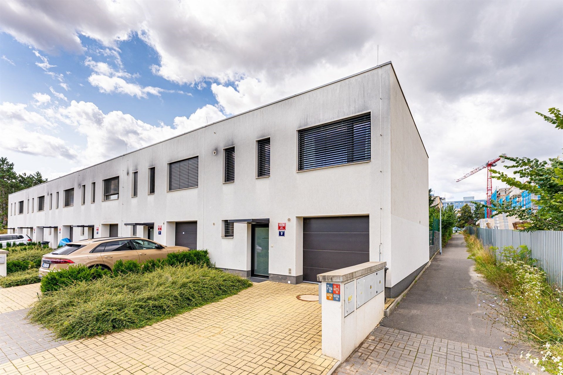 K dlouhodobému pronájmu na rok nabízíme krajní řadový rodinný dům na prestižní adrese Exnárova, Praha 4 Háje. Tato klidná lokalita v metropoli poskytuje vynikající dostupnost do centra města díky nedaleké stanici metra C, Háje. Nemovitost, postavená v roce 2019, se rozkládá na pozemku o celkové výměře 327 m², přičemž zastavěná plocha činí 72 m².