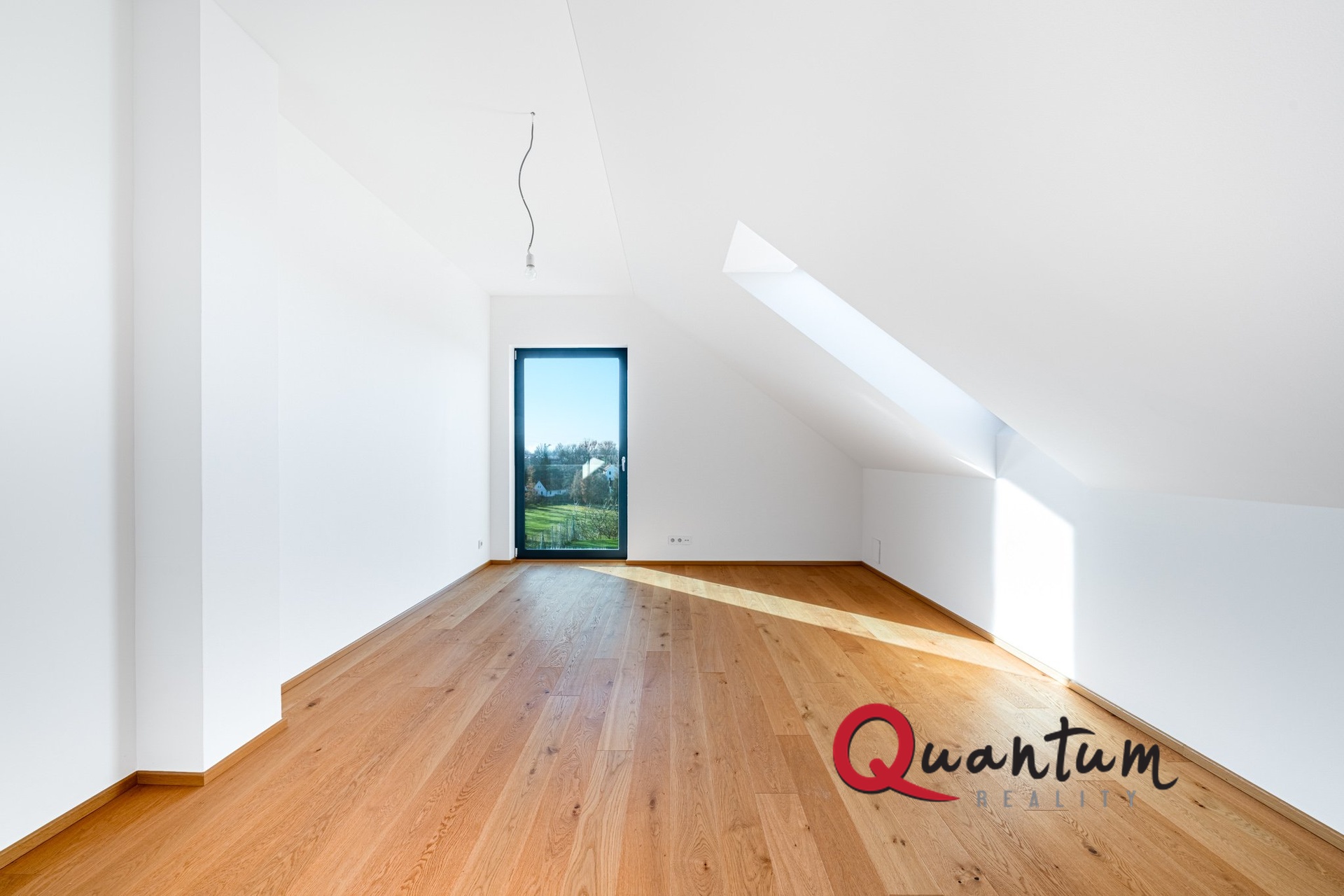 Exkluzivní nabídka samostatně stojícího rodinného domu 7+1 v Praze 10 - Královice - ulice Ke Tvrzi. Moderní novostavba rodinné vily je postavena z kvalitních stavebních materiálů s důrazem na tepelně izolační vlastnosti a úsporu energií. Racionální a účelná vnitřní dispozice poskytuje ideální prostor pro plnohodnotné rodinné bydlení. V přízemí domu se nachází dominantní obývací pokoj s kuchyňským koutem a jídelnou (65 m²). Dále přízemí zahrnuje vstupní halu, pracovnu či variantně pokoj pro hosty, koupelnu, toaletu, šatnu a dvojgaráž. Patro domu je klidovou zónou s hlavní ložnicí s vlastní šatnou a koupelnou s toaletou, dále dva dětské pokoje, další praktická šatna a koupelna s toaletou. Nadstandardním a neočekávaným prostorem celého domu je suterén, který překvapí dvěma plnohodnotnými, plně prosvětlenými pokoji se vstupem na terasu a zahradu. Pokoje mohou sloužit jako pokoje pro hosty, fitness, pracovna, hobby místnost či jako plnohodnotný byt s privátním vstupem. Samozřejmostí je vlastní sociální zázemí, dále technická místnost s prostorem pro pračku i sušičku a také s praktickým detailem v podobě shozu na prádlo. Celková užitná plocha třípodlažního domu činí ohromujících 390 m². Zcela nový dům je nezařízený, připravený k nastěhování, standardem jsou však kvalitní dubové podlahy, velkoryse vybavené koupelny, velkoformátová hliníková okna s izolačními trojskly včetně předokenních žaluzií, celoplošné podlahové teplovodní vytápění úsporným tepelným čerpadlem, přípravou na krbová kamna apod. Kompletní inženýrské sítě jsou napojeny. Celková rozloha koncového, rovinného pozemku se založenou základní zahradou a krásným výhledem do údolí říčky Rokytky činí 1421 m². Rodinný dům je situován na okraj klidové rezidenční zástavby uceleného, již zabydleného projektu Nové Královice, jehož součástí je i restaurace, v těsné blízkosti je hřiště, tenisové kurty a další. Kompletní občanská vybavenost je v sousední Uhříněvsi či Kolovratech. Městská část Královice je ideálním místem pro harmonický život blízko přírody, které nabízí jedinečné propojení klidného vesnického prostředí s moderním městským komfortem. Zároveň jsou dobře dopravně dostupné a v blízké budoucnosti se dostupnost dále zlepší napojením na budovaný Pražský okruh. Velmi ojedinělá nabídka exkluzivního, nového, prostorného rodinného domu připraveného k okamžitému nastěhování bez kompromisů. Lze financovat hypotečním úvěrem.