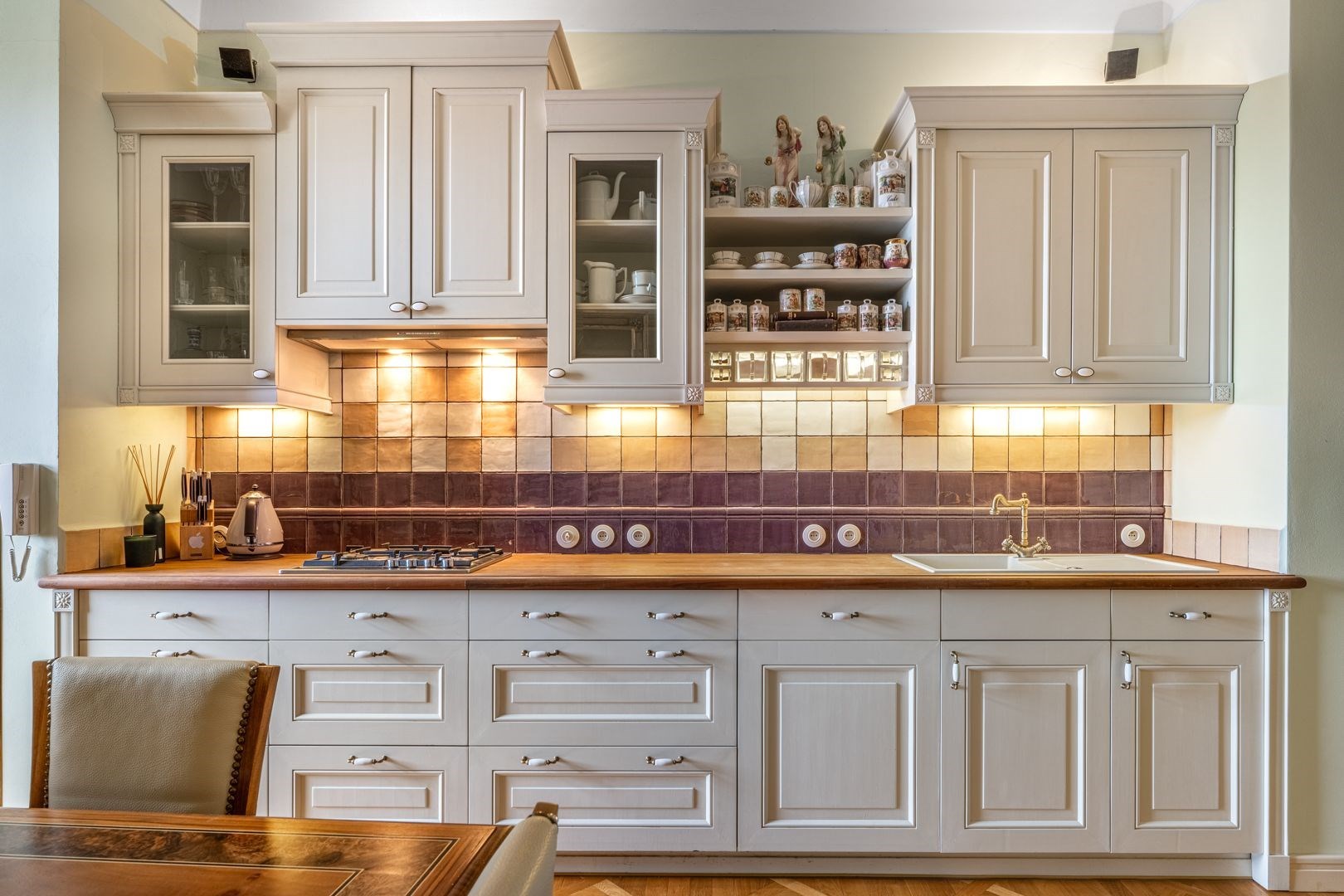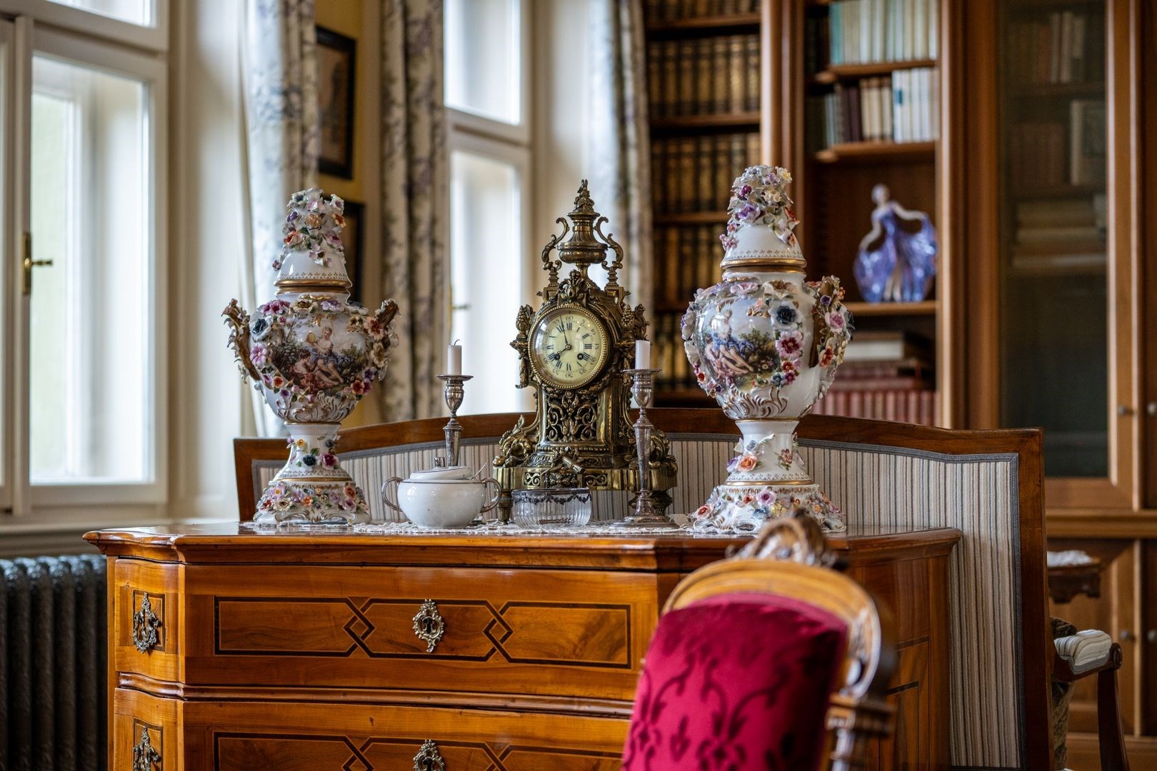 Historické detaily: Stěny zdobené štuky, které podtrhují unikátní charakter prostoru.