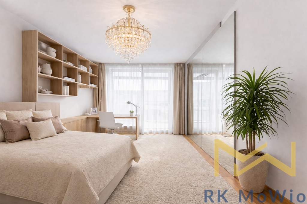 Vybavení bytu zahrnuje kuchyňskou linku se spotřebiči (lednice s mrazákem, varná deska, elektrická trouba, myčka, mikrovlnná trouba), vestavěné skříně, pračku, přípravu pro vysokorychlostní internet, dřevěné podlahy a dlažbu. Interiér je kompletně zařízen a připraven k okamžitému nastěhování. K bytu náleží sklep a možnost pronájmu parkovacího stání za extra poplatek.