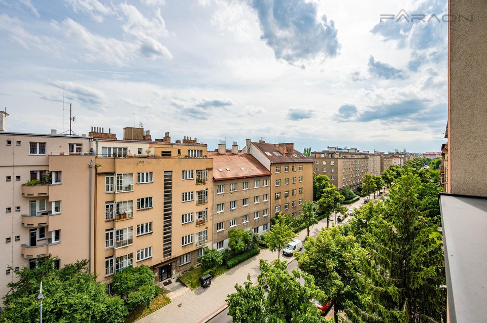Lokalita starých Vršovic dýchá jedinečnou atmosférou a historií. Parky a vzrostlé stromy se střídají s původní historickou zástavbou. V okolí je plná občanská vybavenost, několik restaurací, kaváren a malých obchůdků. Obchodní centrum Eden je jen 8 min chůze. Přímo před domem je zastávka autobusu "Bělocerkevská", 4 min na metro A "Želivského". Parkování je možné v modré zóně před domem.