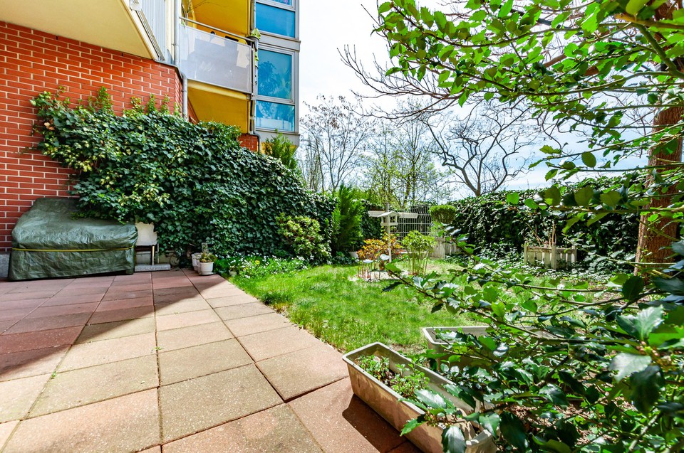 REZERVACE. Prodej prostorného bytu 2+kk s terasou a předzahrádkou se vzrostlou zelení, s garážovým stáním a sklepem v atraktivní a klidné Rezidenci Zvonařka na Královských Vinohradech s recepcí, 24 hod ostrahou, vnitřním bazénem, terasou s neopakovatelnými výhledy na Prahu a privátním upraveným parkem ve vnitrobloku.