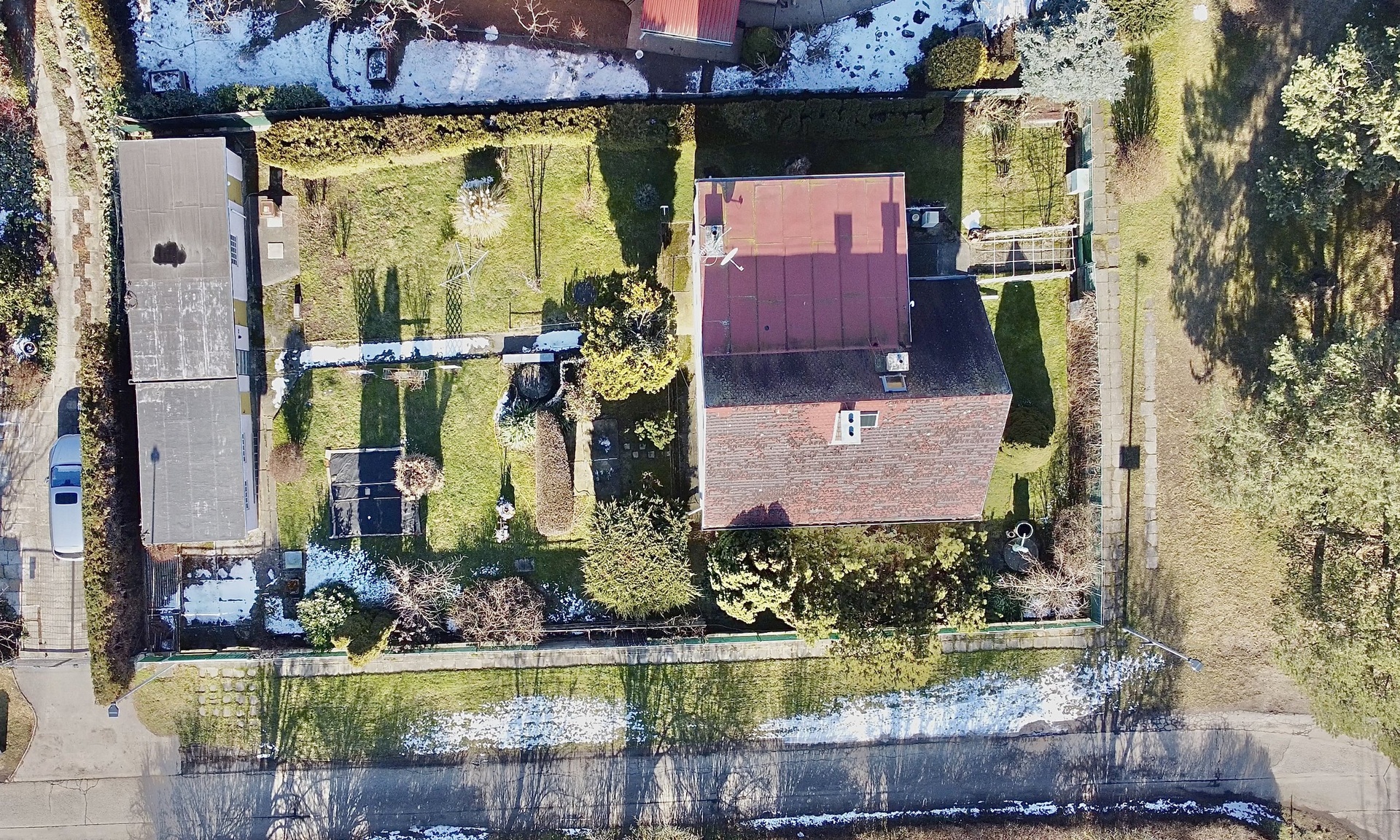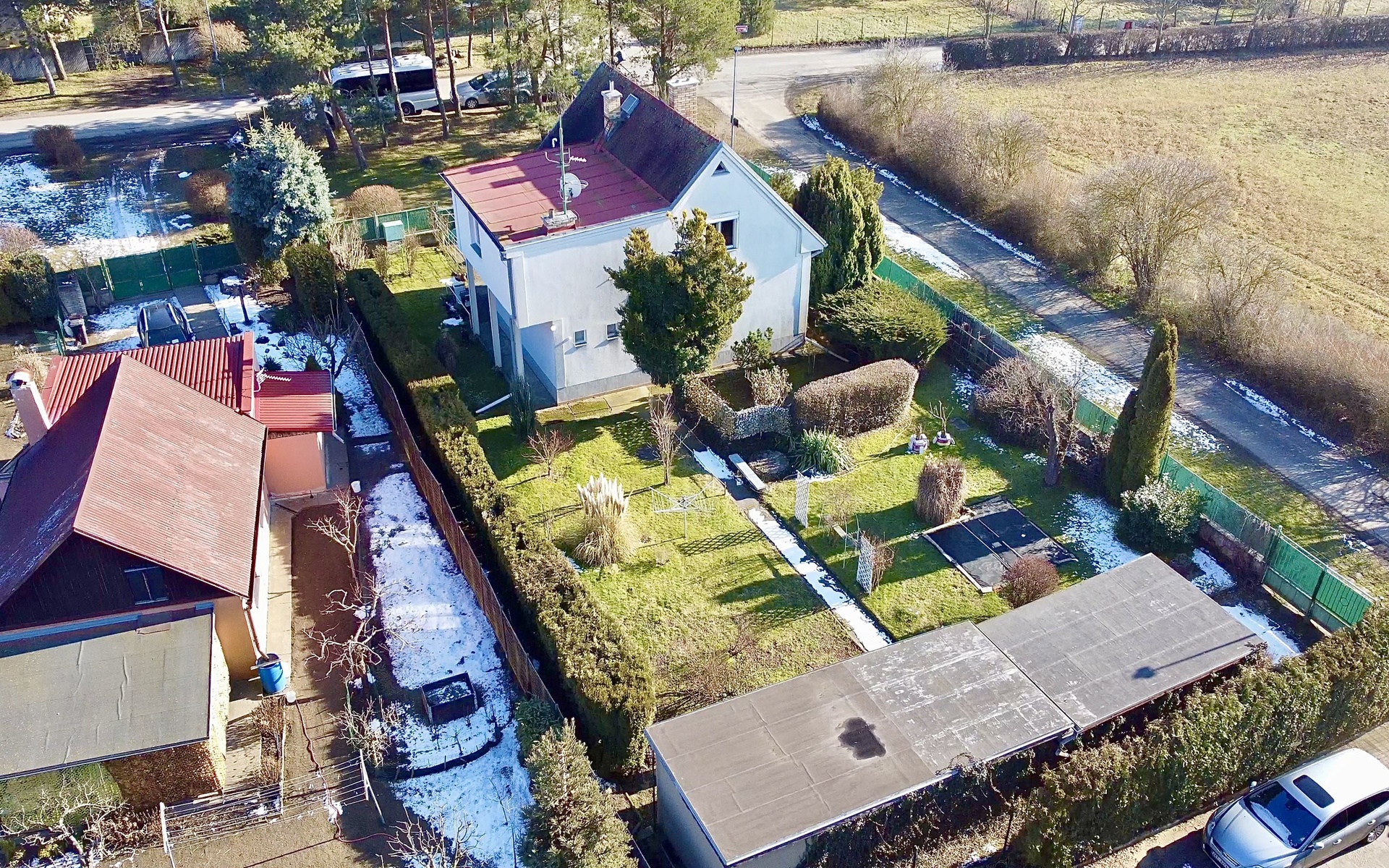 Na pozemku o velikosti 722 m² se dále nachází samostatná garáž s dílnou a dalšími skladovacími prostory o zastavěné ploše 48 m², což ocení zejména majitelé vozidel, kutilové nebo ti, kdo potřebují více úložného prostoru.