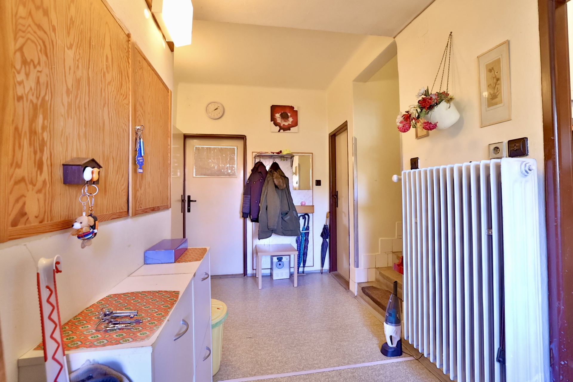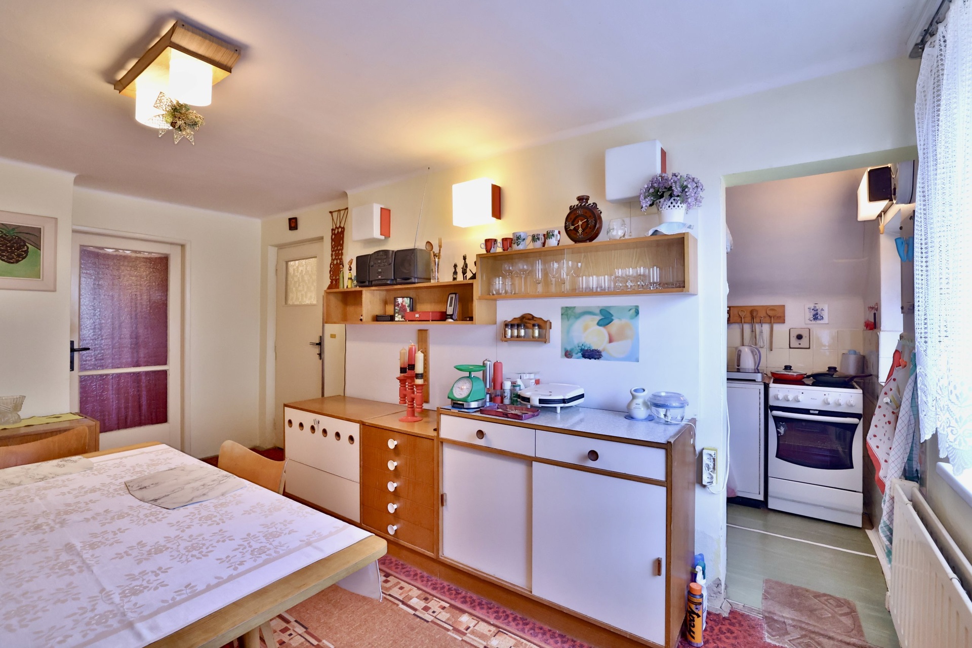 Interiér domu odpovídá staršímu standardu včetně původního vybavení a spotřebičů. Nemovitost je tak vhodná ke kompletní rekonstrukci a nabízí ideální příležitost vytvořit si bydlení přesně podle vlastních představ a současných nároků na komfort.