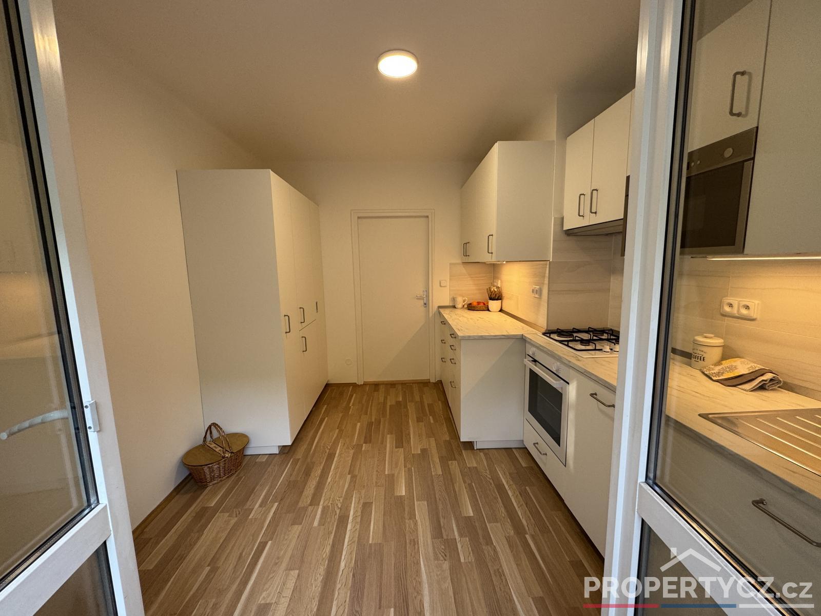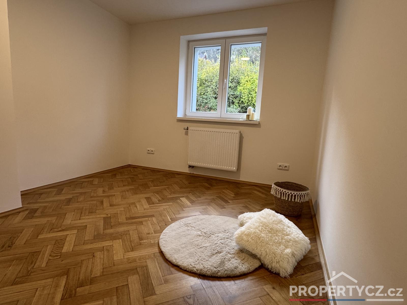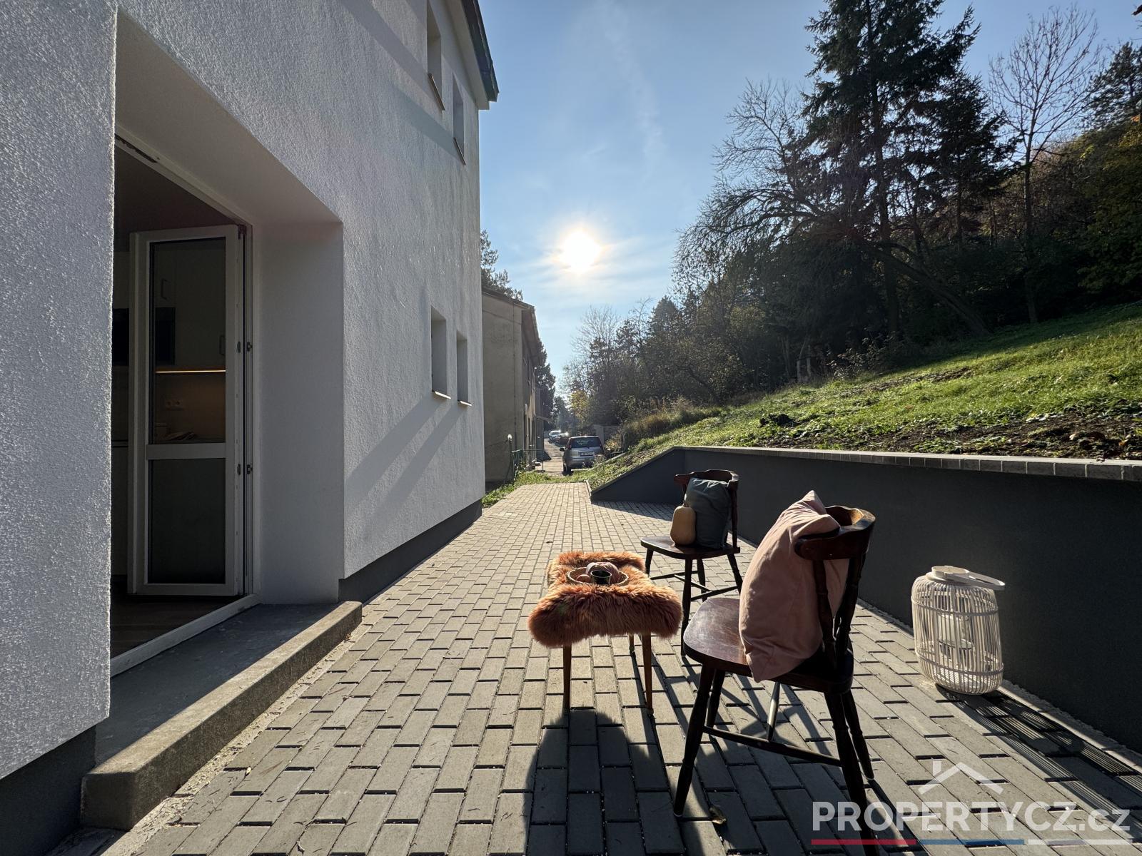 We offer for long-term rent a family house with a garden after complete reconstruction in a quiet location with excellent access to the center. The house has two floors with a layout of 3+1 and consists of an entrance hall, utility room, storage room/closet, a bathroom with a shower and toilet, a spacious living room with a balcony, a separate kitchen with access to the garden, a second bathroom with a bathtub and toilet, a spacious bedroom with a terrace, a separate dressing room, and a children and #39;s room. The house is heated by a new gas condensing boiler and central heating. The kitchen is fully equipped with new appliances: dishwasher, electric oven and gas stove, microwave, extractor hood, refrigerator with freezer, and practical storage systems. In addition to heating, each bathroom has towel radiators, and one of them also has a washing machine connection. The utility room and storage room at the entrance to the house can be used to store seasonal and sports equipment. At the back of the garden, you will find a spacious terrace where you can barbecue, place a hot tub, trampoline, and more. A garden house can also be placed on the property for additional storage. The other part of the duplex is occupied by friendly neighbors. Parking is available a few meters from the house. To unload groceries or other items, you can drive to the edge of the property from Nový Zlíchov Street. The owners also plan to build their own garage on the property with access from Křížová Street.