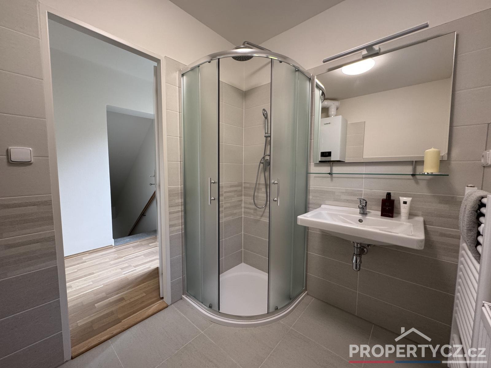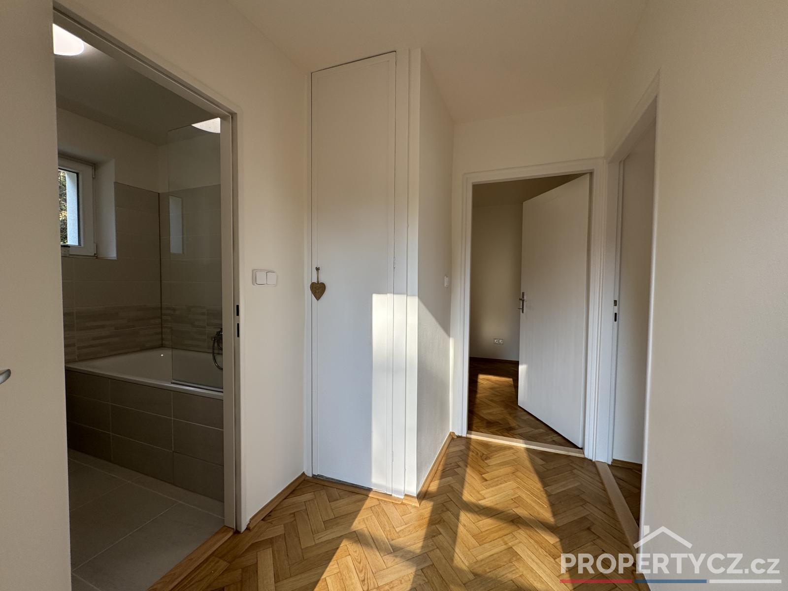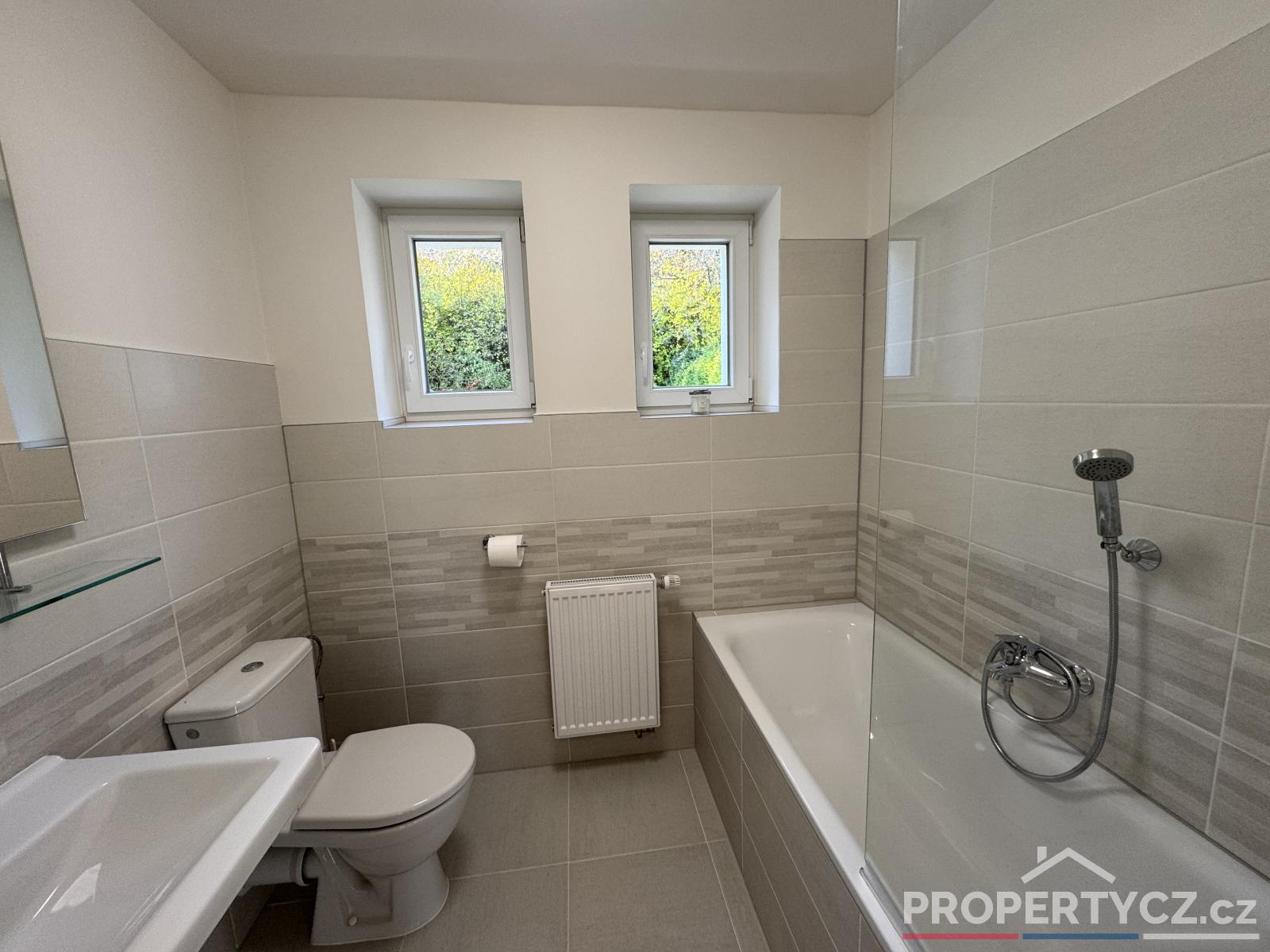 We offer for long-term rent a family house with a garden after complete reconstruction in a quiet location with excellent access to the center. The house has two floors with a layout of 3+1 and consists of an entrance hall, utility room, storage room/closet, a bathroom with a shower and toilet, a spacious living room with a balcony, a separate kitchen with access to the garden, a second bathroom with a bathtub and toilet, a spacious bedroom with a terrace, a separate dressing room, and a children and #39;s room. The house is heated by a new gas condensing boiler and central heating. The kitchen is fully equipped with new appliances: dishwasher, electric oven and gas stove, microwave, extractor hood, refrigerator with freezer, and practical storage systems. In addition to heating, each bathroom has towel radiators, and one of them also has a washing machine connection. The utility room and storage room at the entrance to the house can be used to store seasonal and sports equipment. At the back of the garden, you will find a spacious terrace where you can barbecue, place a hot tub, trampoline, and more. A garden house can also be placed on the property for additional storage. The other part of the duplex is occupied by friendly neighbors. Parking is available a few meters from the house. To unload groceries or other items, you can drive to the edge of the property from Nový Zlíchov Street. The owners also plan to build their own garage on the property with access from Křížová Street.