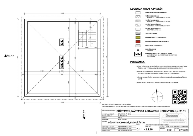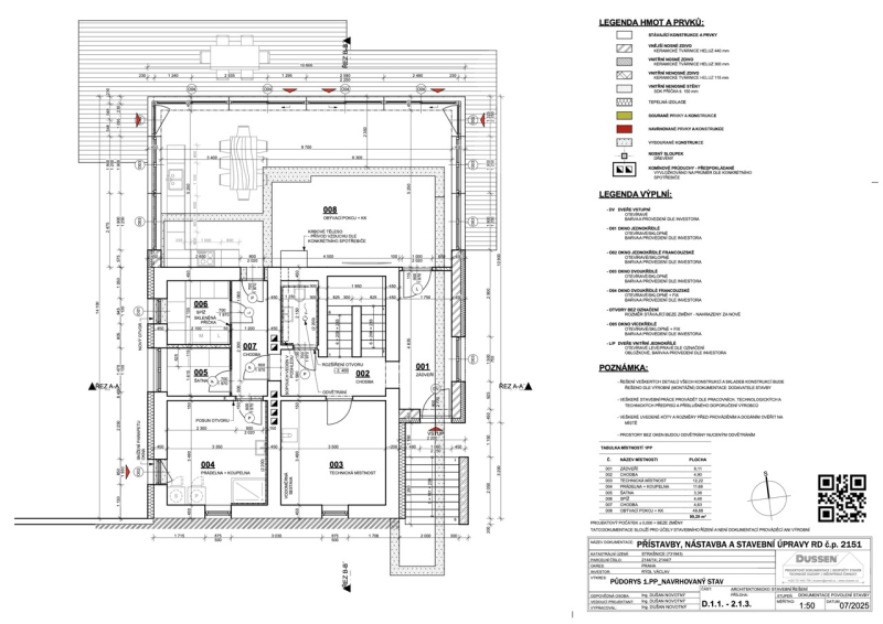 Stávající dům je rozdělen do tří podlaží a podkroví. K dispozici je projektová dokumentace na přístavbu, nástavbu a stavební úpravy, která ukazuje možnou budoucí podobu domu po rekonstrukci. Výsledkem může být velkorysé rodinné bydlení s důrazem na prostor, světlo, komfort a propojení interiéru se zahradou.