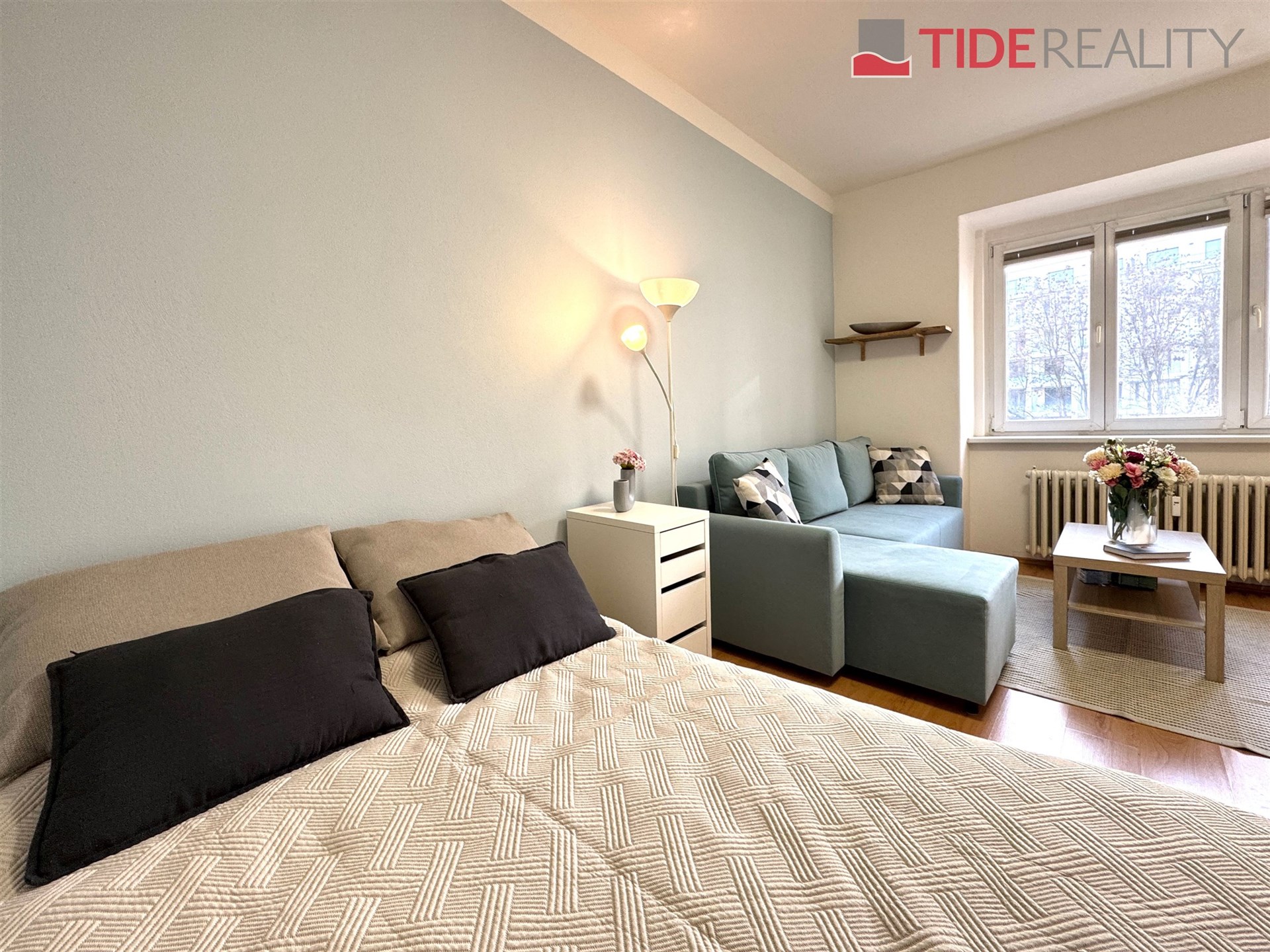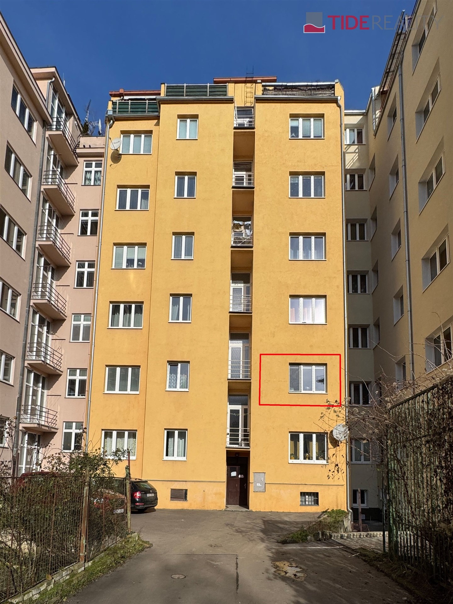 Slunný, do vnitrobloku orientovaný byt 1+kk, ul. Plzeňská, Praha 5