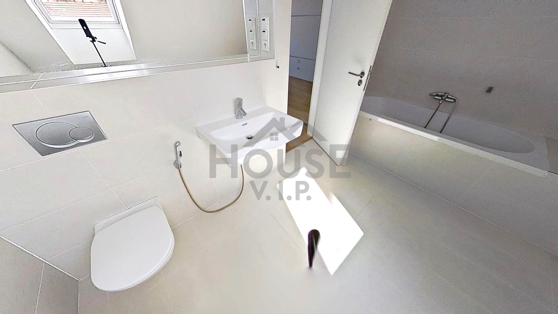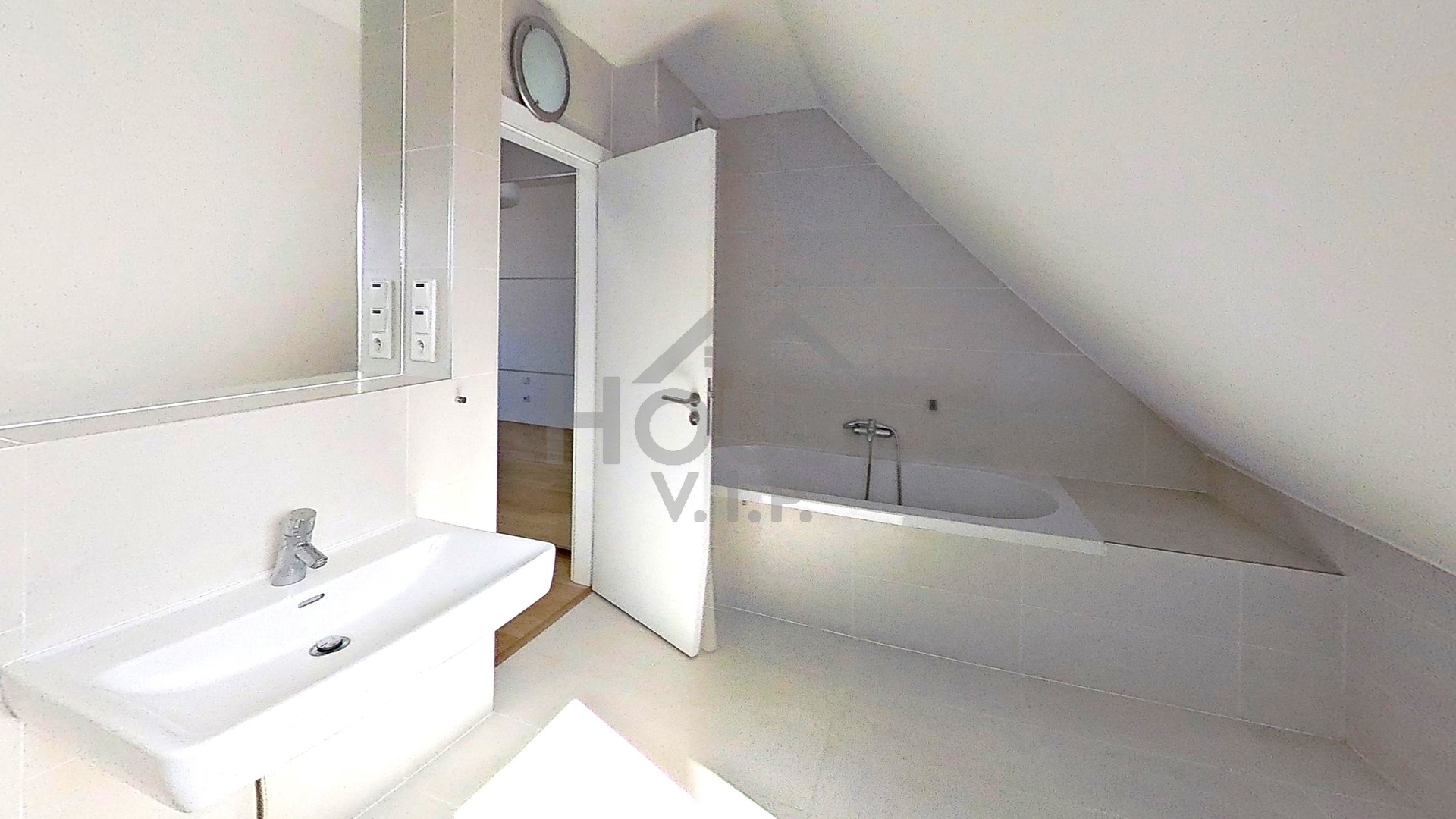 Prostor schodiště dodává interiéru vzdušný a prostorný nádech. Celý prostor se orientován od východu na západ což zaručuje dostatek světla po většinu dne i díky prosklenému vikýři v obývacím pokoji směrem na východ. Byt má instalovanou klimatizaci, která zpříjemní letní měsíce.