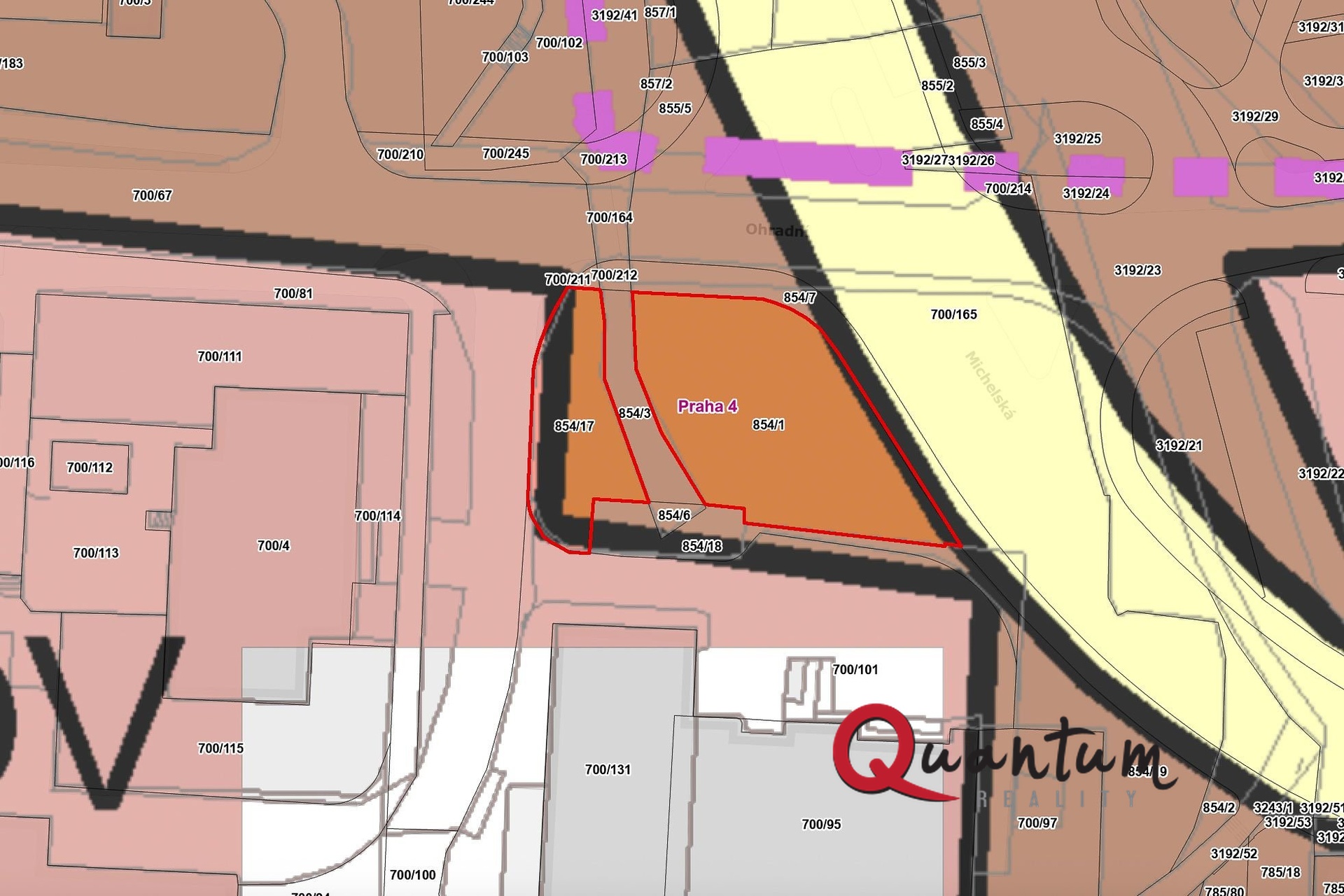 Exkluzivní nabídka dvou stavebních pozemků o celkové výměře 645 m² v Praze 4 - Michli. Pozemky jsou situovány na okraj křižovatky Michelská a Ohradní a jsou rozděleny pozemkem ve vlastnictví Hlavního města Prahy. Mírně svažité pozemky jsou platným územním plánem vedeny jako SV - všeobecně smíšené, tzn. určeny pro umístění polyfunkčních staveb nebo kombinaci monofunkčních staveb pro bydlení, obchod, administrativu apod. Pozemky se nachází v ochranném pásmu Pražské památkové rezervace a je přes ně veden teplovod a plynovod. Veškeré inženýrské sítě jsou v přímém sousedství na hranici pozemku. Dopravní dostupnost je vynikající, autobusová zastávka Ohradní vzdálena 2 minuty chůze. Ojedinělá příležitost koupě stavebních pozemků vhodných ke komerčnímu využití, developerskému záměru či jako investiční spekulace za zajímavou cenu 15 426,- Kč/m².