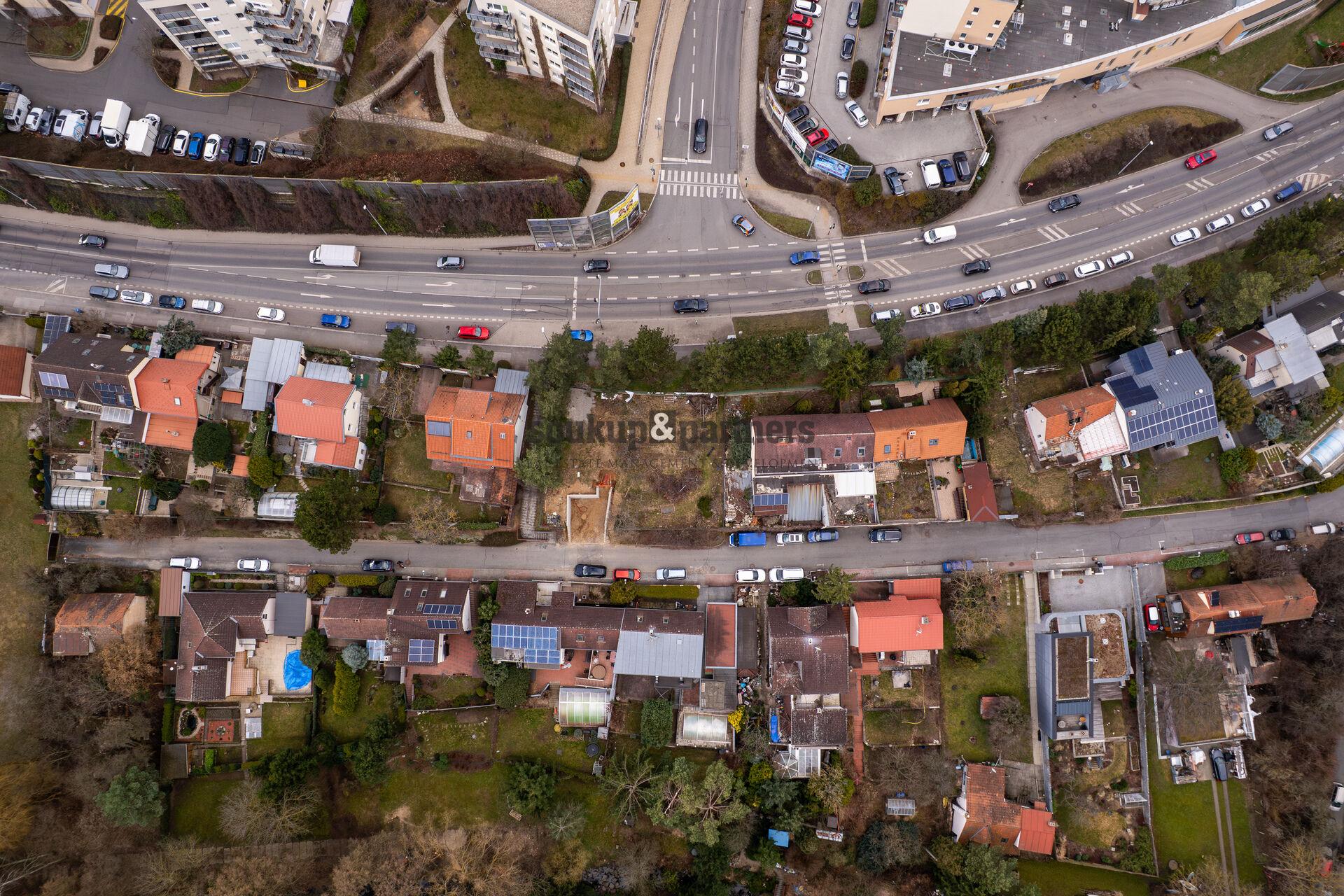 Pozemek je dle územního plánu veden v plochách SV - všeobecně smíšené, které umožňují výstavbu rodinného domu. K pozemku byla zpracována architektonická studie moderního rodinného domu, která citlivě reaguje na svažitý charakter parcely a nabízí atraktivní řešení víceúrovňového bydlení s garáží.