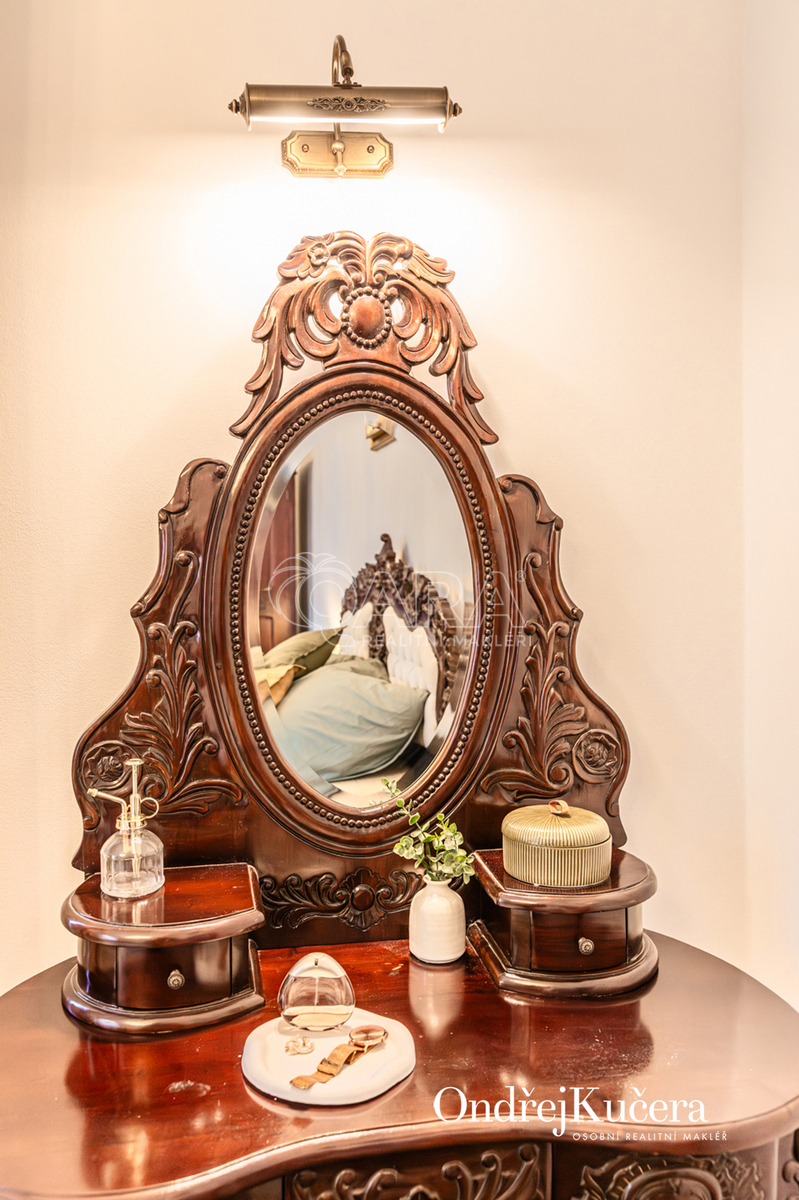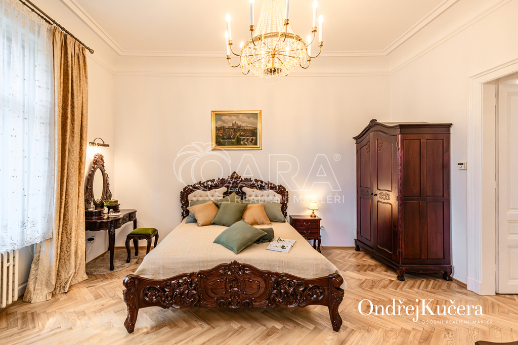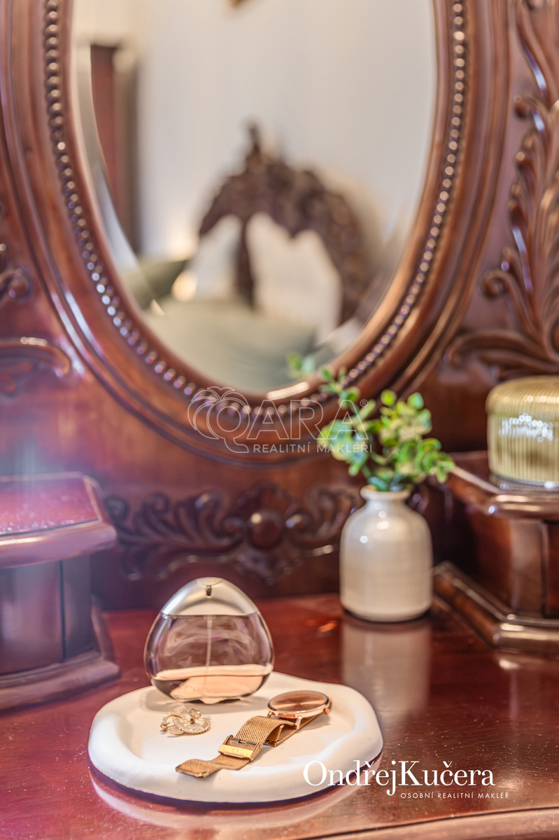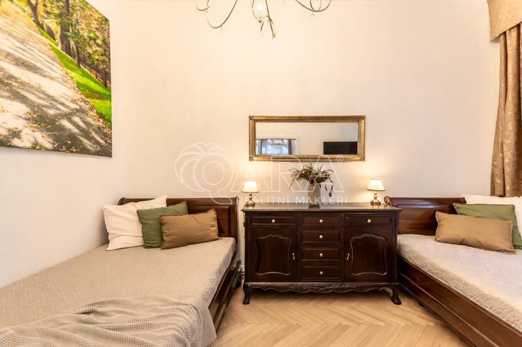 Součástí prodeje může být i kompletní vybavení včetně historického nábytku, což umožňuje okamžité užívání bez dalších investic. K bytu také náleží sklep o velikosti cca 2,5 m² a společná chodba pouze pro dva byty.