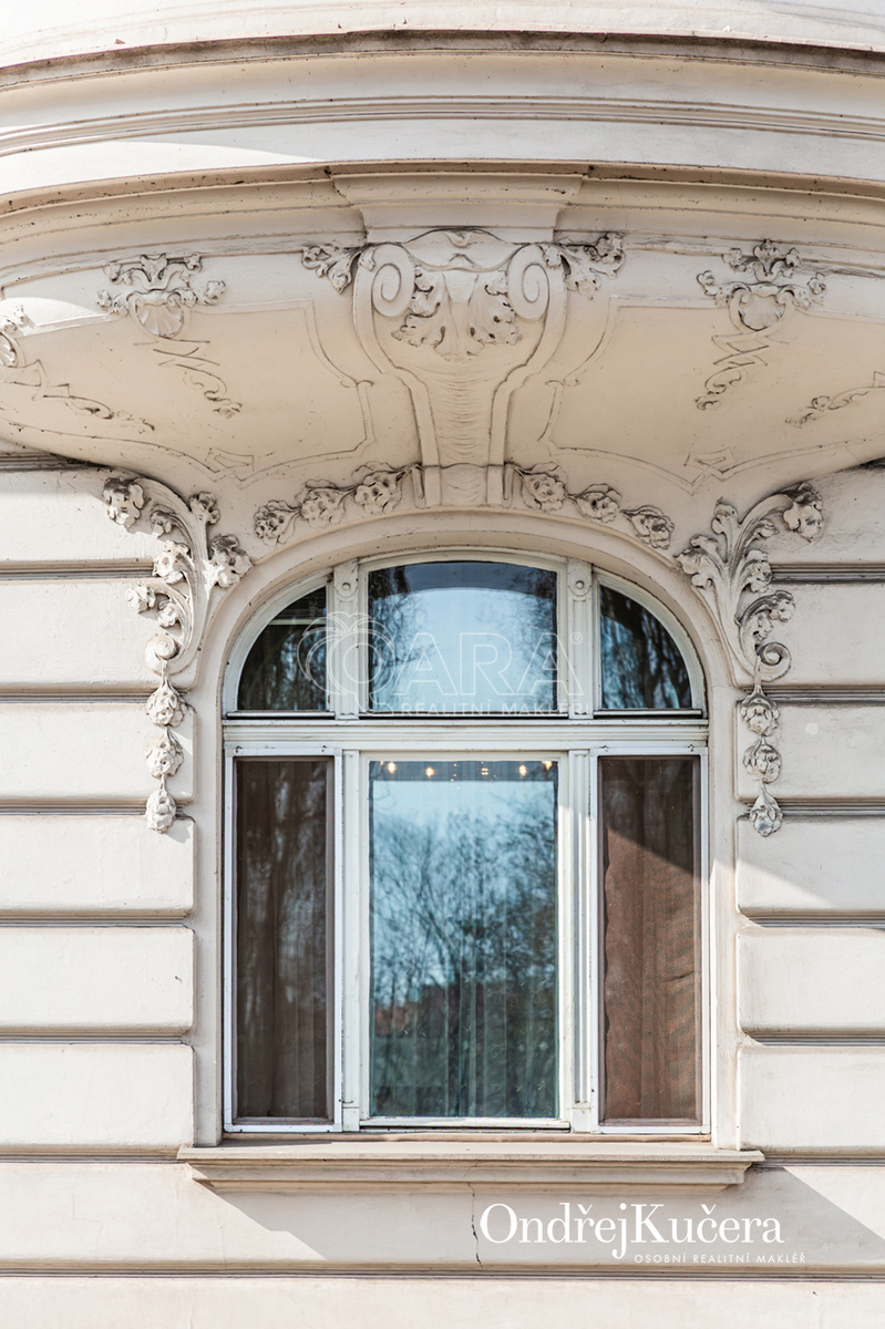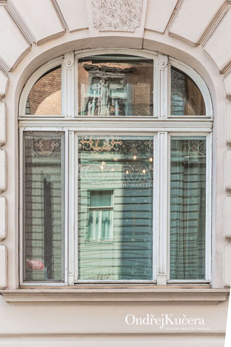 Byt o výměře 64,5 m² se nachází ve zvýšeném přízemí secesního domu. Díky velkým oknům, umístěným přibližně dva metry nad úrovní chodníku, je interiér příjemně světlý a vysoké stropy o výšce téměř 3,6 m dodávají prostoru vzdušnost i osobitý charakter.
