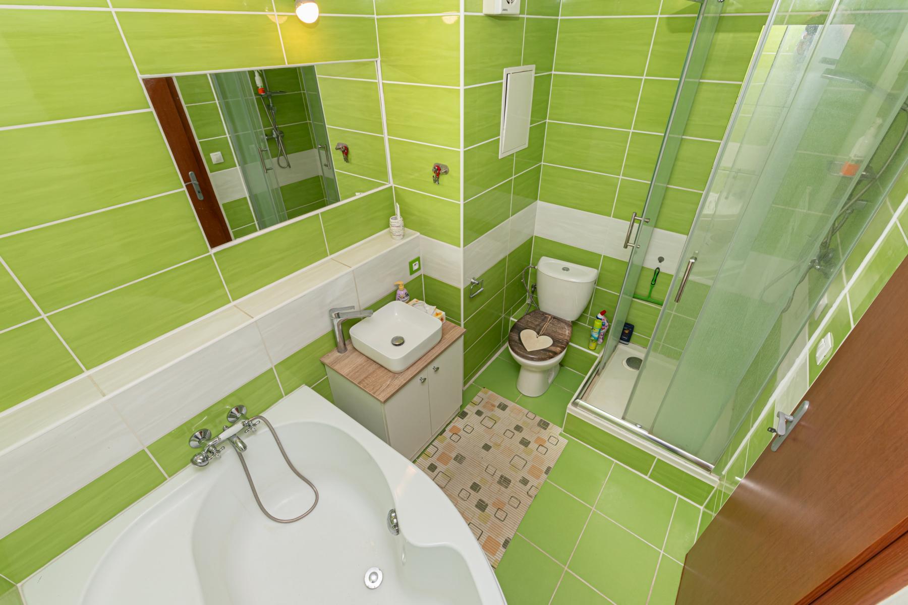 koupelna s WC (cca 4,05 m2) s vanou i sprchovým koutem