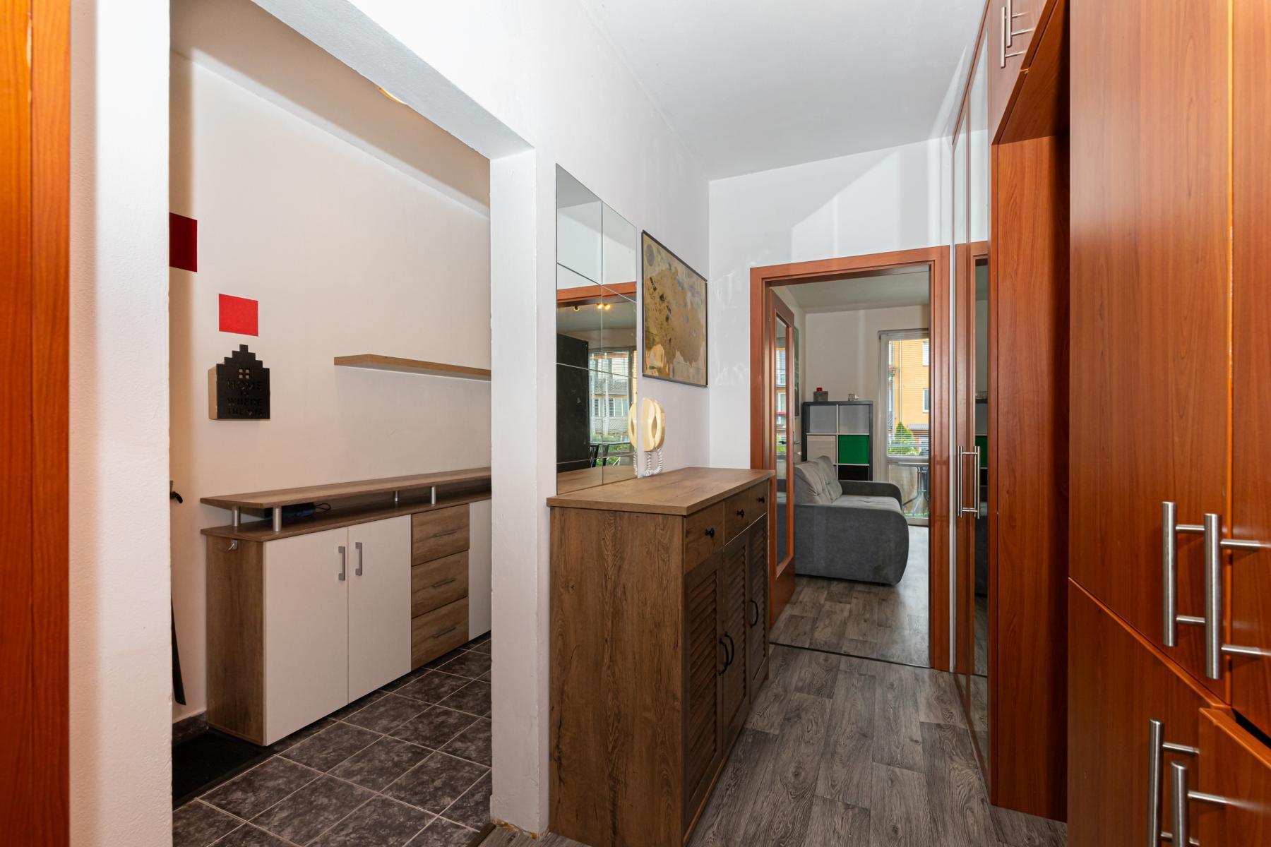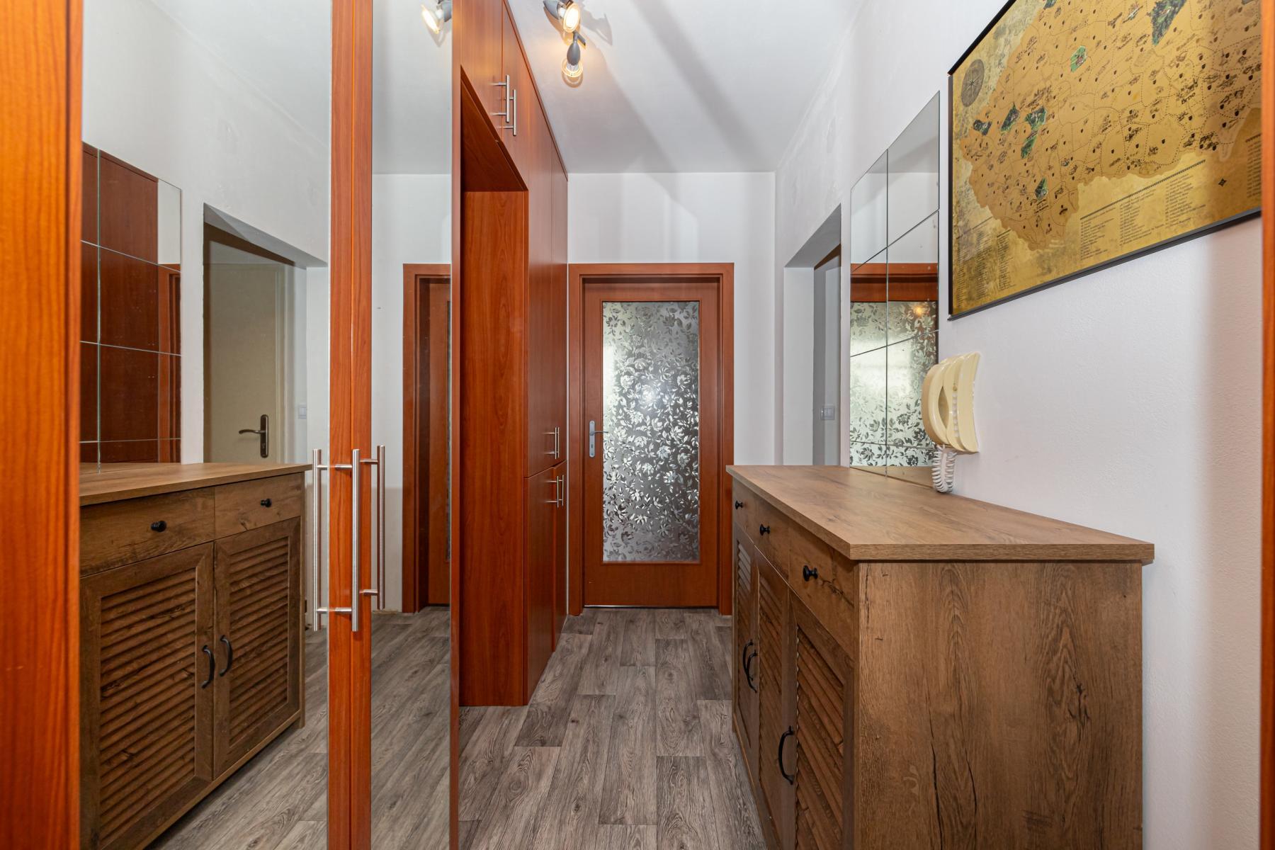 Velkou výhodou je prostorná vestavěná skříň v předsíni, která nabízí dostatek úložného prostoru včetně místa pro pračku a sušičku.