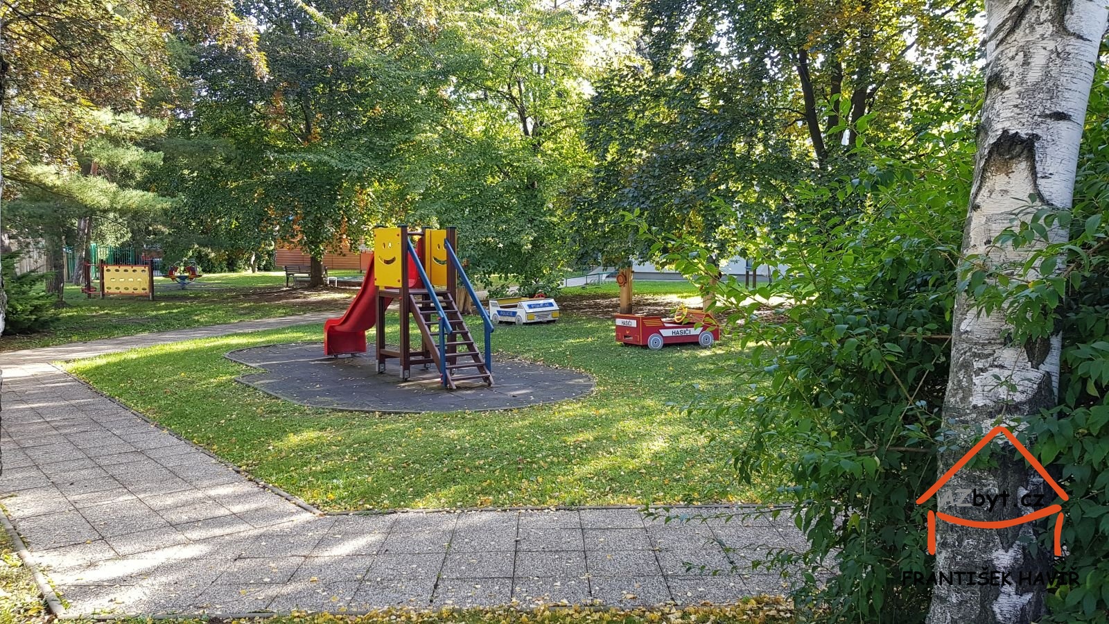 V okolí domu jsou také další dětská hřiště, mateřské a základní školy, gymnázium i střední školy.