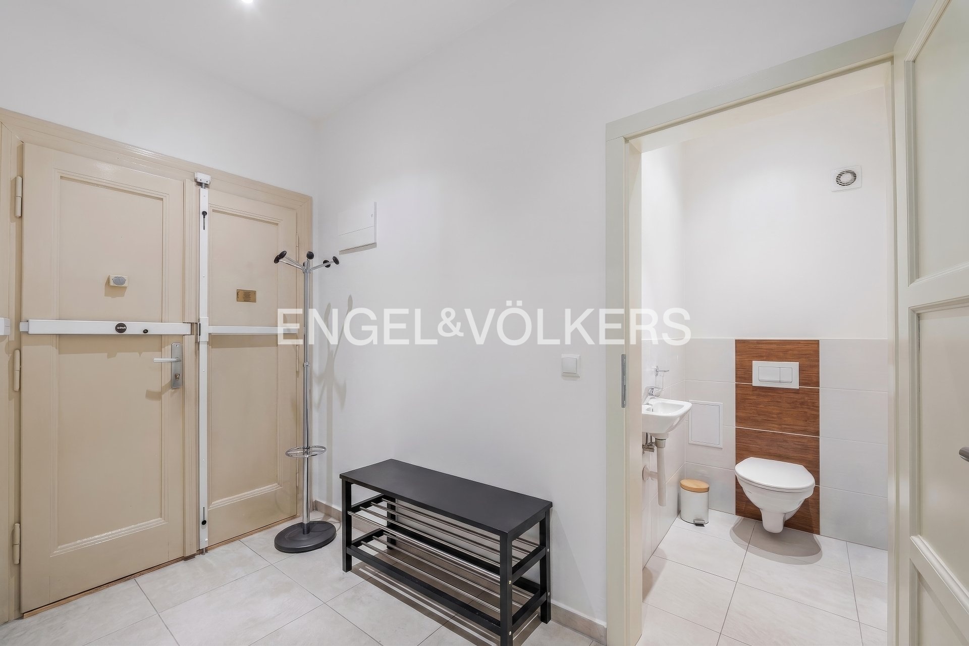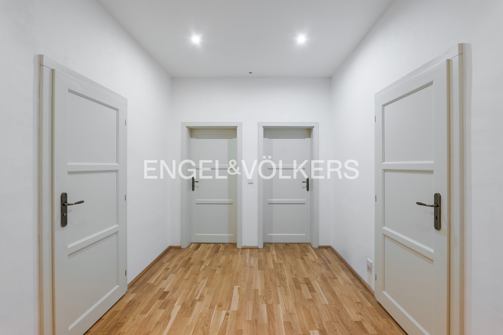 Dispozice bytu zahrnuje prostornou předsíň s přístupem na samostatné WC s umyvadlem, halu, velkorysou šatnu, ložnici do vnitrobloku, obývací pokoj s kuchyní a druhou ložnici s orientací do ulice. Obývací pokoj s ložnicí do ulice nabízí příjemný výhled na vzrostlé stromy, zatímco ložnice do vnitrobloku poskytuje ticho a klid. Nadstandardně velká okna a vysoké stropy činí byt světlým a vzdušným. K bytu o vnitřní užitné ploše 85 m² náleží zrekonstruovaná sklepní kóje.