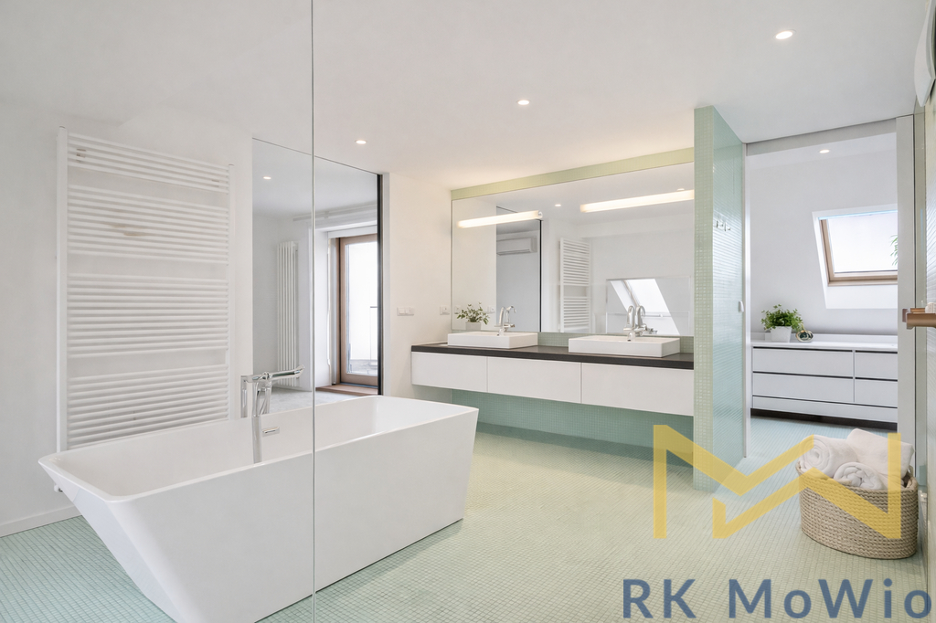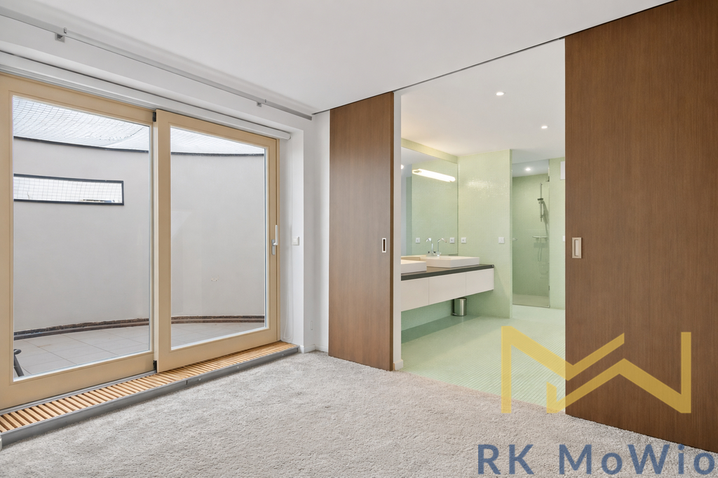 Půdorys bytové jednotky je řešen jako dvoupodlažní a disponuje vstupní chodbou, obývacím pokojem, samostatnou kuchyní s jídelní částí, dvěma ložnicemi, dvěma koupelnami (vana, sprchový kout, umyvadlo, toaleta) a terasou orientovanou do klidného prostředí. Vybavení bytu zahrnuje kuchyňskou linku se spotřebiči a další prvky odpovídající komfortnímu městskému bydlení. Mezonetové uspořádání přirozeně odděluje denní a klidovou část a zároveň dodává interiéru vzdušnost a dostatek soukromí.