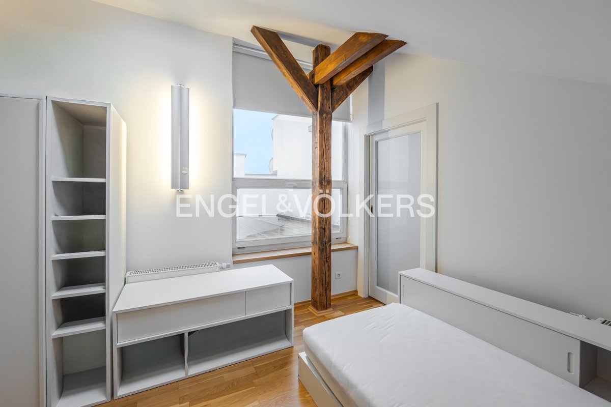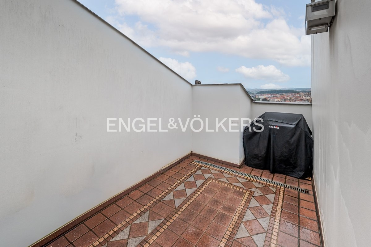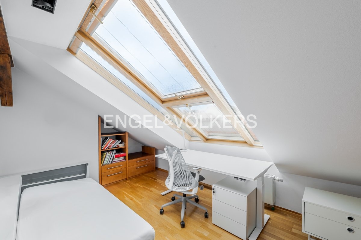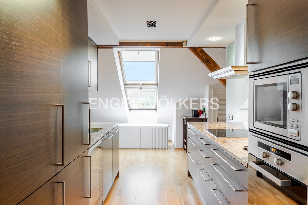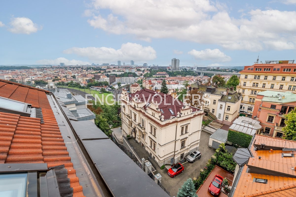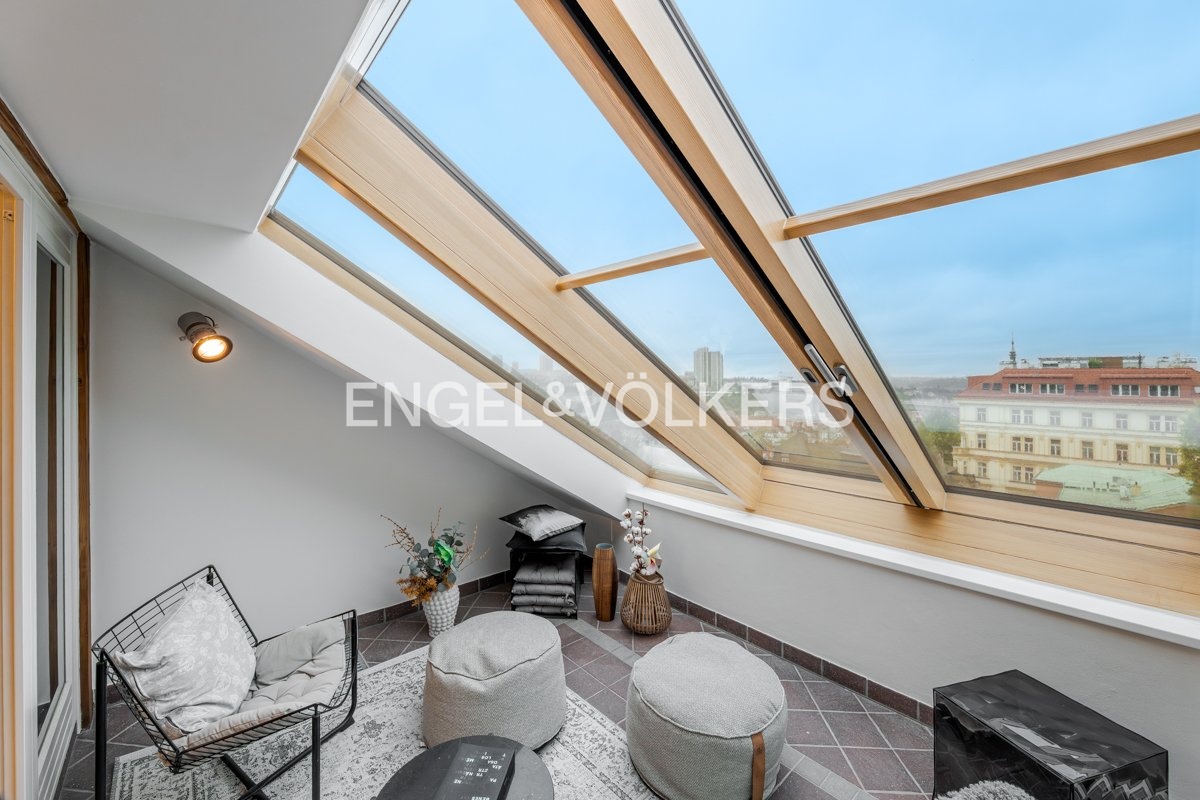 Bydlení v prémiovém vinohradském domě nabízí velkorysý mezonetový byt s terasou a zimní zahradou, který je situovaný v nejvyšším podlaží domu a nabízí tak příjemné výhledy na okolní tradiční vinohradskou zástavbu a město v dáli.