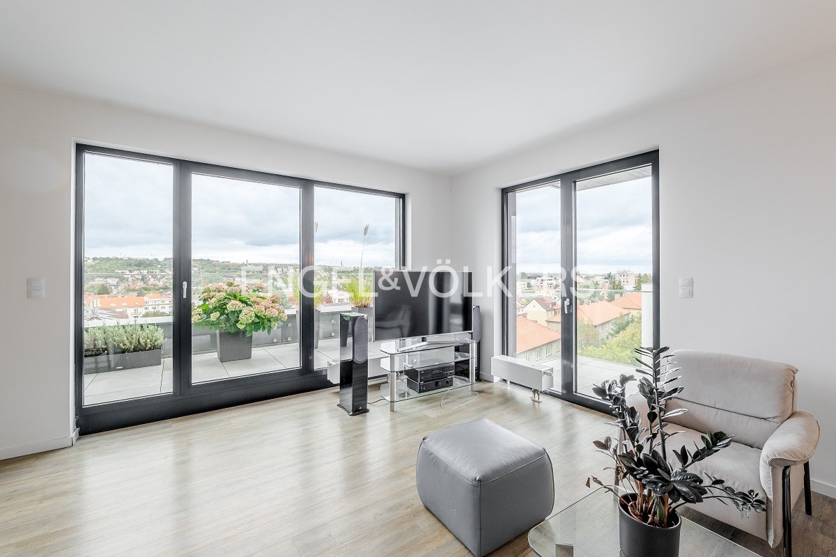 Světlý prostorný byt 2+kk s terasami a výhledem na Prahu