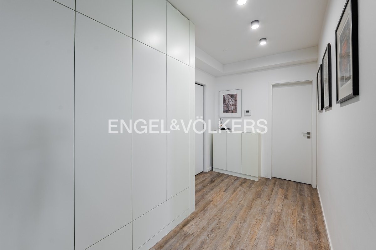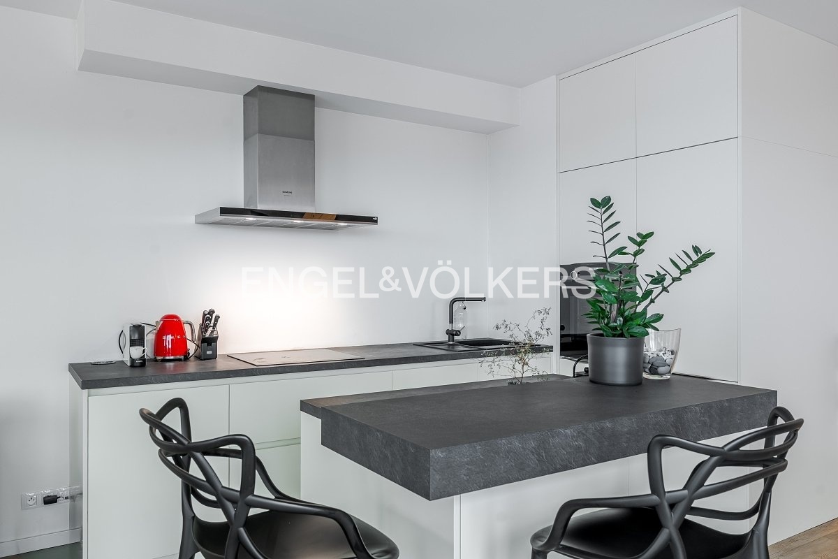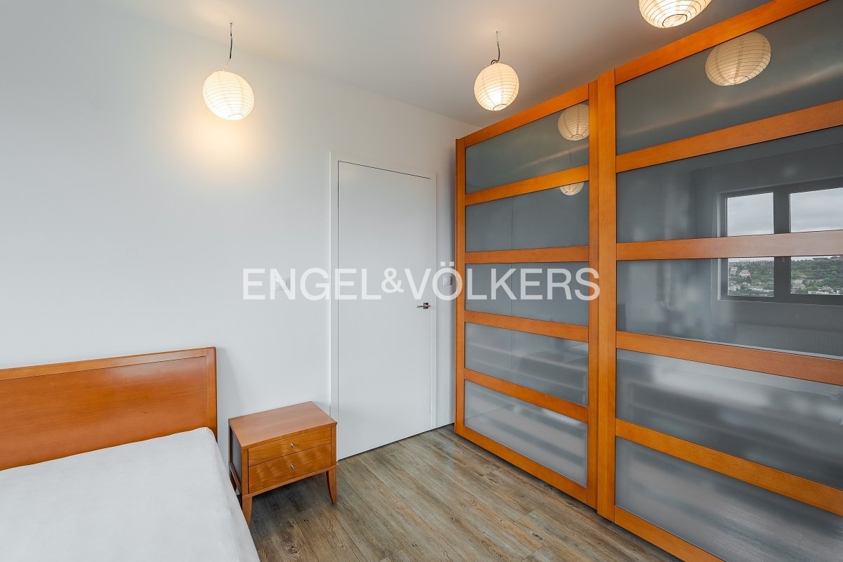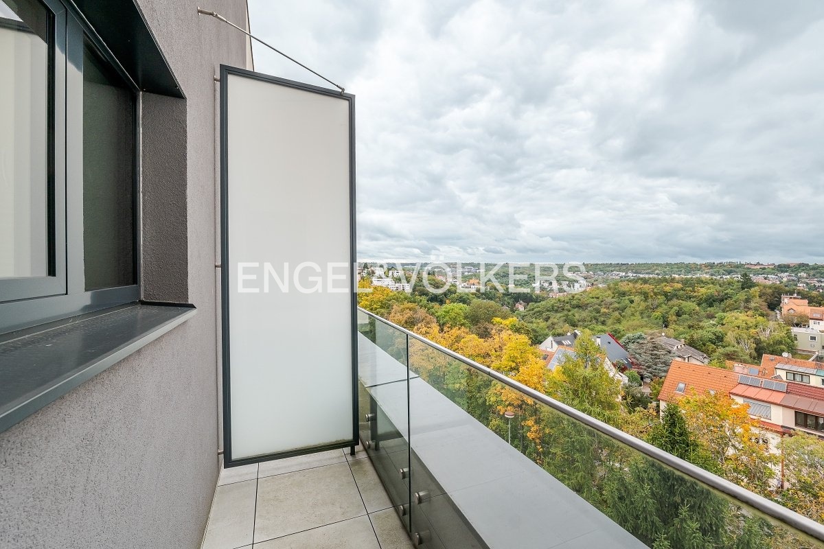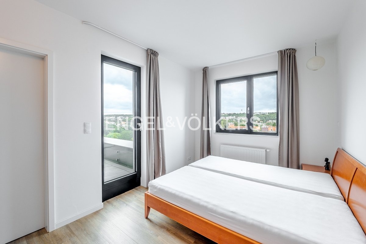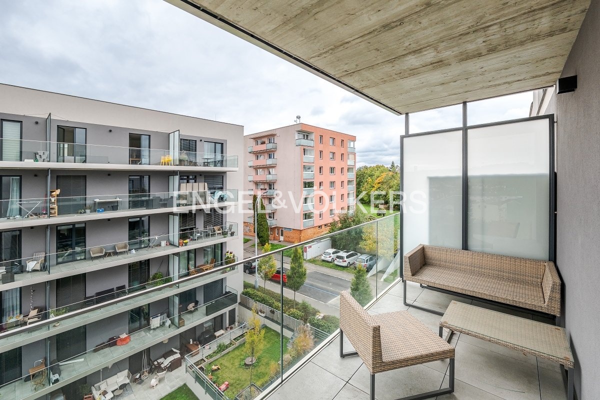 Nabízíme k pronájmu moderní světlý a prostorný byt v novostavbě, který se nachází ve 4. nadzemním podlaží. Byt je kompletně zařízený kvalitním nábytkem a spotřebiči, připravený k okamžitému nastěhování. Velkým benefitem jsou tři prostorné terasy s nádherným výhledem na Prahu. Díky velkým oknům je interiér krásně prosvětlený a působí velmi vzdušně. Dispozice bytu je prakticky řešená a nabízí dostatek úložného prostoru.