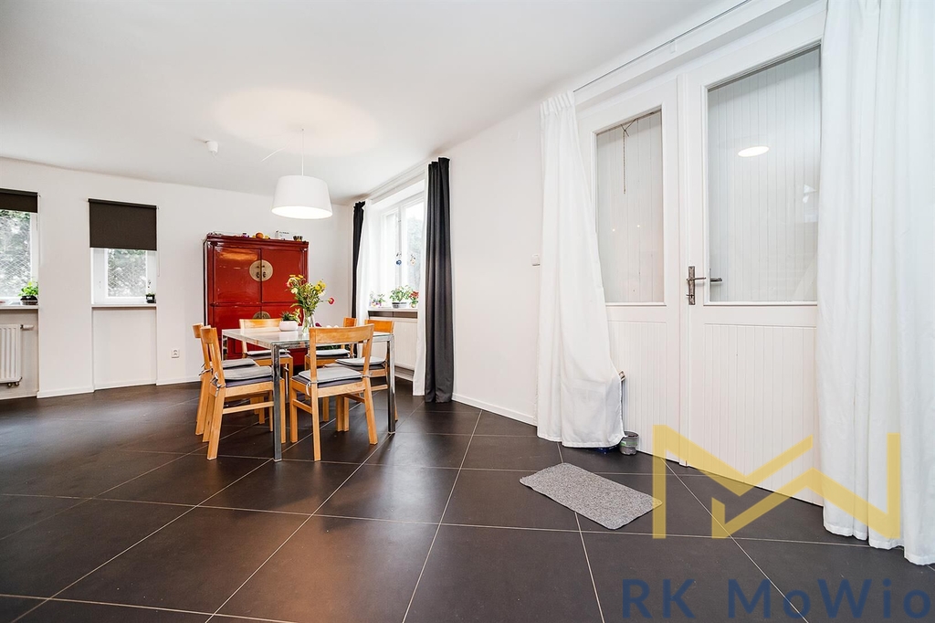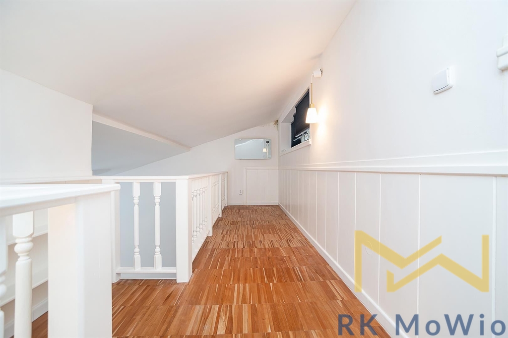 Přízemí domu nabízí vstupní chodbu, světlý obývací pokoj s kuchyňským koutem a jídelním prostorem se vstupem na zahradu, 1 koupelnu (s vanou, umyvadlem a toaletou) s technickou místností. V 1. patře naleznete halu s přístupem na terasu, 3 ložnice (2 z nich mají vlastní koupelny a vestavěnou galerii), třetí koupelnu. V suterénu budovy se nachází technická místnost a sklep. Vybavení domu: kuchyňská linka včetně lednice s mrazákem, sklokeramické varné desky, digestoře, myčky, zabudované elektrické a mikrovlnné trouby; vestavěné skříně, krb, přípojka pro pračku a sušičku, příprava pro vysokorychlostní internet, dřevěné podlahy a dlažba. Na pozemku je možnost parkování pro 2 auta. Dům se pronajímá bez nábytku.