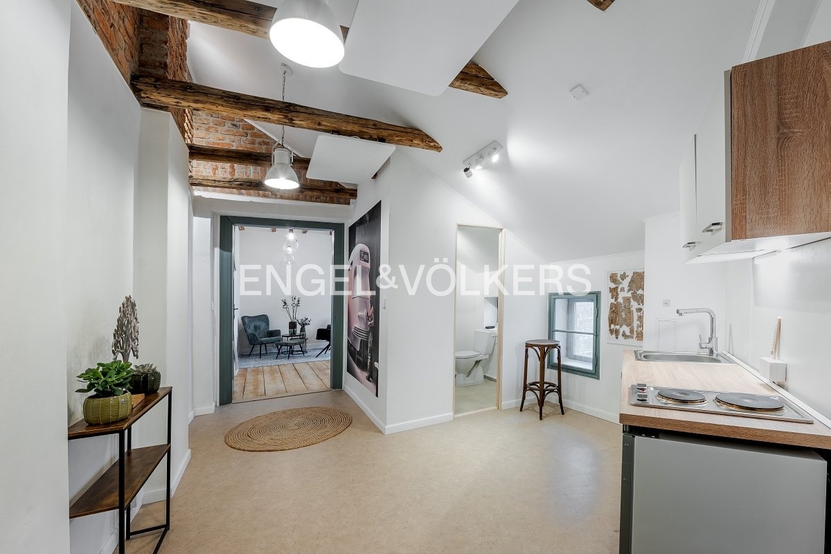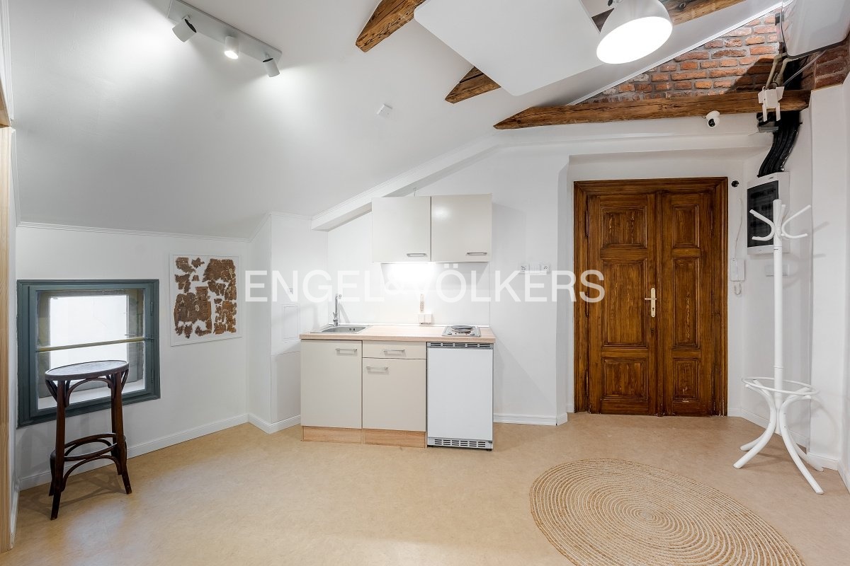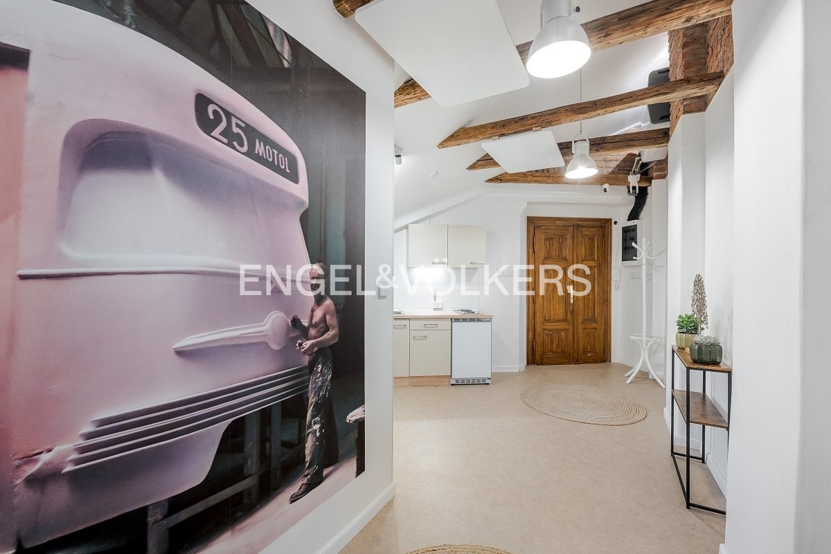 Byt v nejvyšším patře vznikl půdní vestavbou a prošel kompletní rekonstrukcí v roce 2025 a nabízí bydlení s výhledem do klidného vnitrobloku na východ. Dispozice zahrnuje kuchyň, obývací místnost/ložnici a designovou koupelnu se sprchovým koutem.
