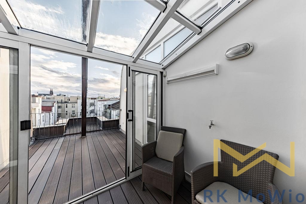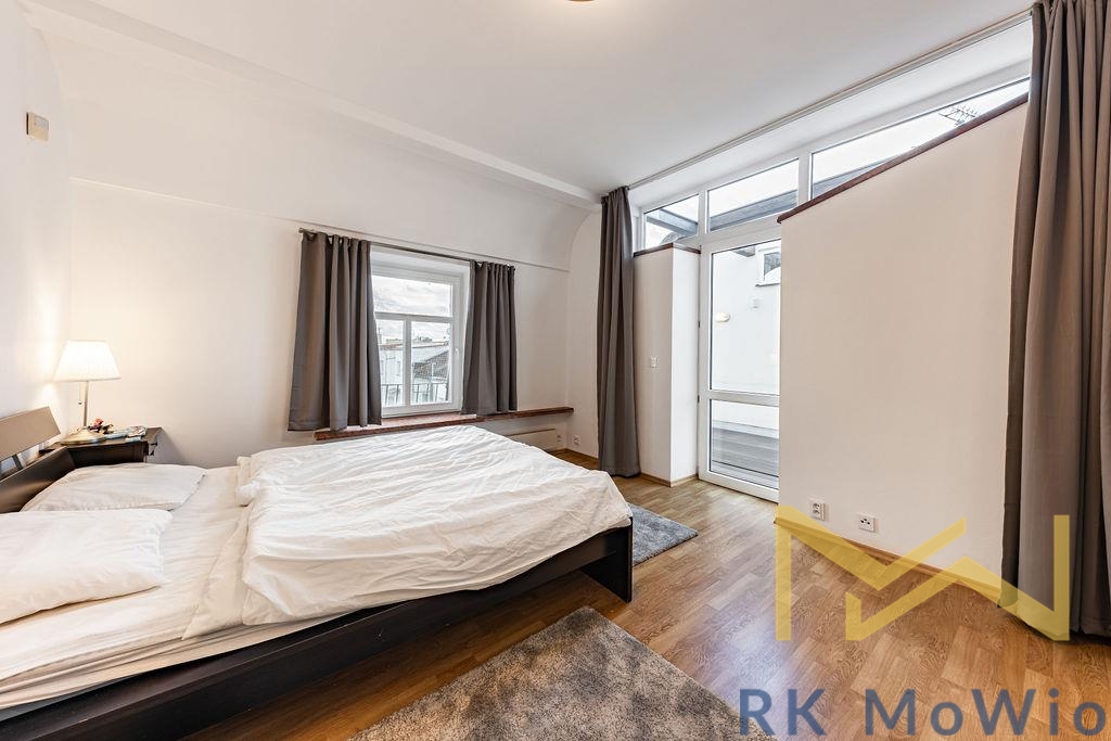 Na pronájem nabízíme zařízený sametový mezonetový byt s honosnými prvky o dispozici 5+1 o podlahové ploše 250 m² situovaný v 6. a 7. patře (7. a 8. nadzemní podlaží) domu s výtahem v ulici Dřevná na Praze 2 - Nové Město.